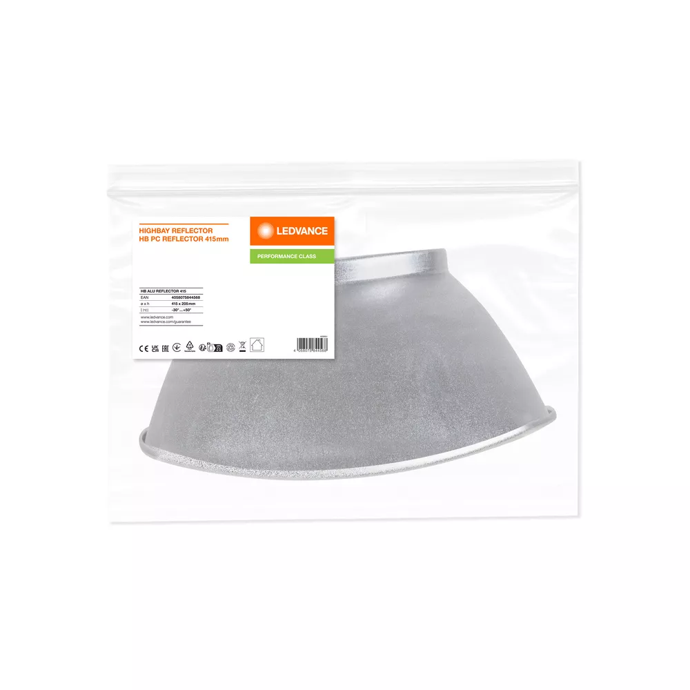 Reflektory do opraw HIGH BAY GEN 5. Cechy produktu: Wysokiej jakości reflektor aluminiowy. HB ALU REFLEKTOR 415 odpowiedni do wersji HB P 75W (On-Off i DALI). HB ALU REFLEKTOR 500 odpowiedni do wersji HB P 150W i HB P 200W (On-Off i DALI).