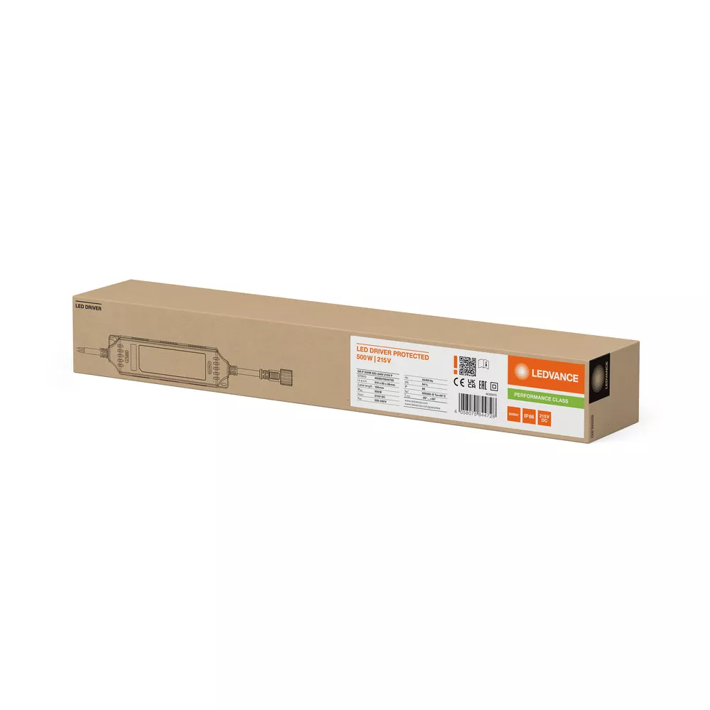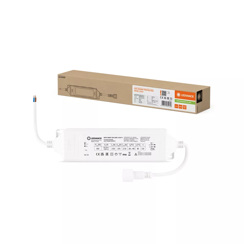 Sterownik LED o stałym napięciu i napięciu wyjściowym 215 V. Cechy produktu: Dostępne w wersji 500 W. Wstępnie okablowane do podłączenia zasilania sieciowego i taśmy LED. Napięcie zasilania: 220…240 V. Częstotliwość pracy: 50/60 Hz. Zabezpieczenie przed przegrzaniem, zabezpieczenie przed zwarciem obwodu wyjściowego, zabezpieczenie przed przepięciem obwodu wyjściowego. Trwałość: do 50 000 h (przy maks. temperaturze Ta). Stopień ochrony: IP66. Zalety produktu: Proste i szybkie połączenie dzięki funkcji blokady obrotowej. Zwiększona skuteczność świetlna i wartość strumienia świetlnego paska LED w połączeniu ze sterownikiem LED. Niskie tętnienie światła dzięki sterownikowi LED DR P 500W 220-240V 215V P. Idealnie dopasowane do elastycznych pasków LED na napięcie 230V AC. Szybki i łatwy montaż. Dobra wydajność i niezawodność. Obszary zastosowań: Ogólne oświetlenie wnętrz. Ogólne oświetlenie zewnętrzne. Przemysł i plac budowy. Biura, punkty sprzedaży detalicznej i sale konferencyjne. Oświetlenie fasad budynków. Oświetlenie dekoracyjne. Porady dotyczące bezpieczeństwa: Wszystkie podłączenia elektryczne muszą być wykonane przez osobę wykwalifikowaną.. Uwaga, ryzyko porażenia prądem.. Nie otwierać obudowy.. Przed instalacją należy odłączyć zasilanie..