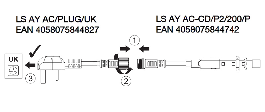 Wtyczka zasilająca do taśm LED Zasilanie bezpośrednio z sieci 230V AC. Cechy produktu: Przewód zasilający ze zintegrowaną funkcją blokady obrotowej i długością wynoszącą 1,50 m. Nadaje się tylko dla regionu Wielkiej Brytanii. Stopień ochrony: IP20. Zalety produktu: Łatwa instalacja złącza, bez konieczności ręcznego łączenia przewodów. Obszary zastosowań: Ogólne oświetlenie wnętrz. Ogólne oświetlenie zewnętrzne.