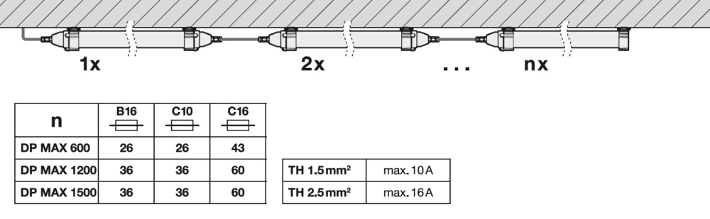 | Maks. liczba opraw na wyłącznik nadprądowy B16: | 36 |