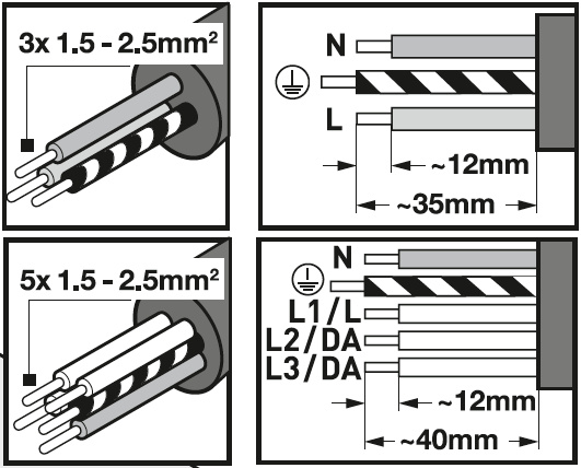 | Przekrój przewodu do podłączenia: | 1,5 - 1,5 mm² |