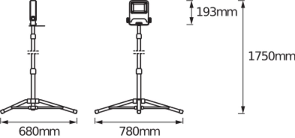 Uniwersalna oprawa robocza LED z WORKLIGHTS - TRIPOD i wtyczką typu J (numer seryjny 441011). Cechy produktu: Dostępna z jedną lub dwiema głowicami oprawy oświetleniowej. Kąt obrotu głowicy oprawy oświetleniowej: 360°, pochylenie: 180°. Stopień ochrony, głowica i obudowa oprawy: IP65. Rodzaj ochrony, wtyczka: IP55. Regulacja wysokości statywu do 1,8 m. Złącze otwierane jednym ruchem umożliwia regulację kąta głowicy oprawy oświetleniowej. Wtyczka typu J (SN 441011). Zalety produktu: Możliwość składania zapewnia łatwe przechowywanie. Oszczędność energii aż do 80% w porównaniu z oprawami do żarówek halogenowych. Półmatowy klosz z hartowanego szkła zapewnia równomierne oświetlenie. Obszary zastosowań: Renowacja. Garaże. Piwnice. Warsztaty. Wyposażenie / Akcesoria: Kompletne akcesoria do montażu i podłączenia w zestawie. Porady dotyczące bezpieczeństwa: Produkt w klasie ochrony I. Wszystkie przewodzące prąd, metalowe części obudowy, które mogą absorbować napięcie podczas pracy lub podczas konserwacji w przypadku awarii, muszą być stale PODŁĄCZONE do przewodu uziemiającego..
