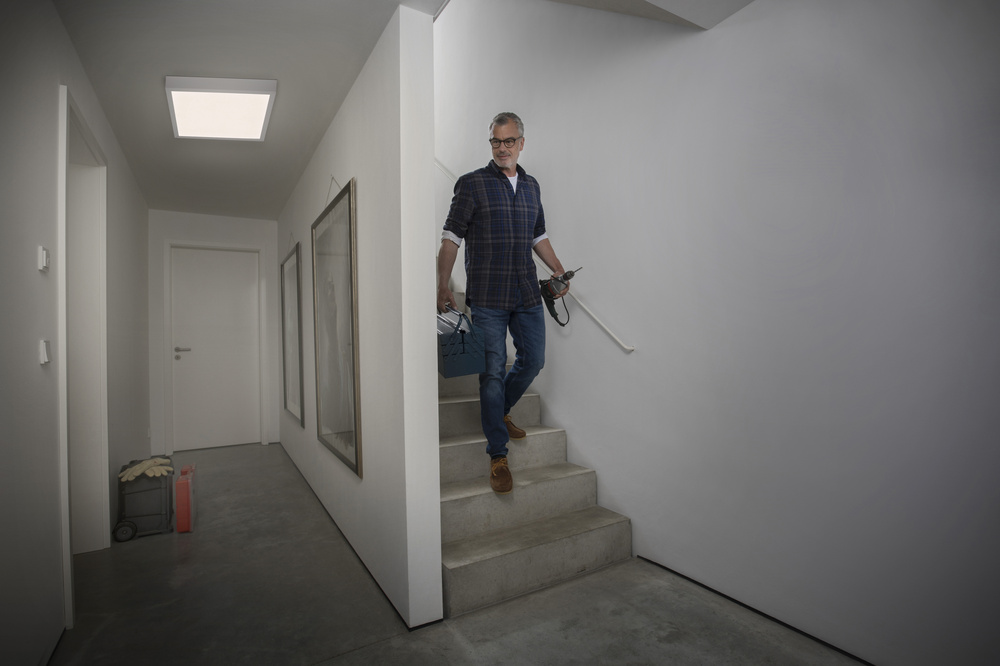 Oprawy oświetleniowe Essential Panel do podstawowych zadań oświetleniowych. Cechy produktu: Oprawa naścienna i sufitowa. Panel wpuszczany może być używany jako panel natynkowy, zestaw ramek jest kupowany osobno. Zalety produktu: Równomierny rozsył strumienia świetlnego. Łatwa i szybka instalacja. Konstrukcja 2 w 1: montaż wpuszczany lub natynkowy z zestawem rozszerzającym. Ramka do montażu powierzchniowego dla panelu 60 x 60 do montażu bezśrubowego. Obszary zastosowań: Pomieszczenia codziennego użytku. Wyposażenie / Akcesoria: Sterownik w komplecie. Do montażu w zabudowie (montaż powierzchniowy i zwieszakowy wymaga odpowiednich akcesoriów). Porady dotyczące bezpieczeństwa: Wszystkie podłączenia elektryczne muszą być wykonane przez osobę wykwalifikowaną.. Uwaga, ryzyko porażenia prądem.. Oprawy nie nadają się do pokrywania materiałem termoizolacyjnym.. Sprawdź przydatność ściany i sufitu. Jeśli nie jesteś pewien, zasięgnij profesjonalnej porady.. Produkt w klasie ochrony I. Wszystkie przewodzące prąd, metalowe części obudowy, które mogą absorbować napięcie podczas pracy lub podczas konserwacji w przypadku awarii, muszą być stale PODŁĄCZONE do przewodu uziemiającego..