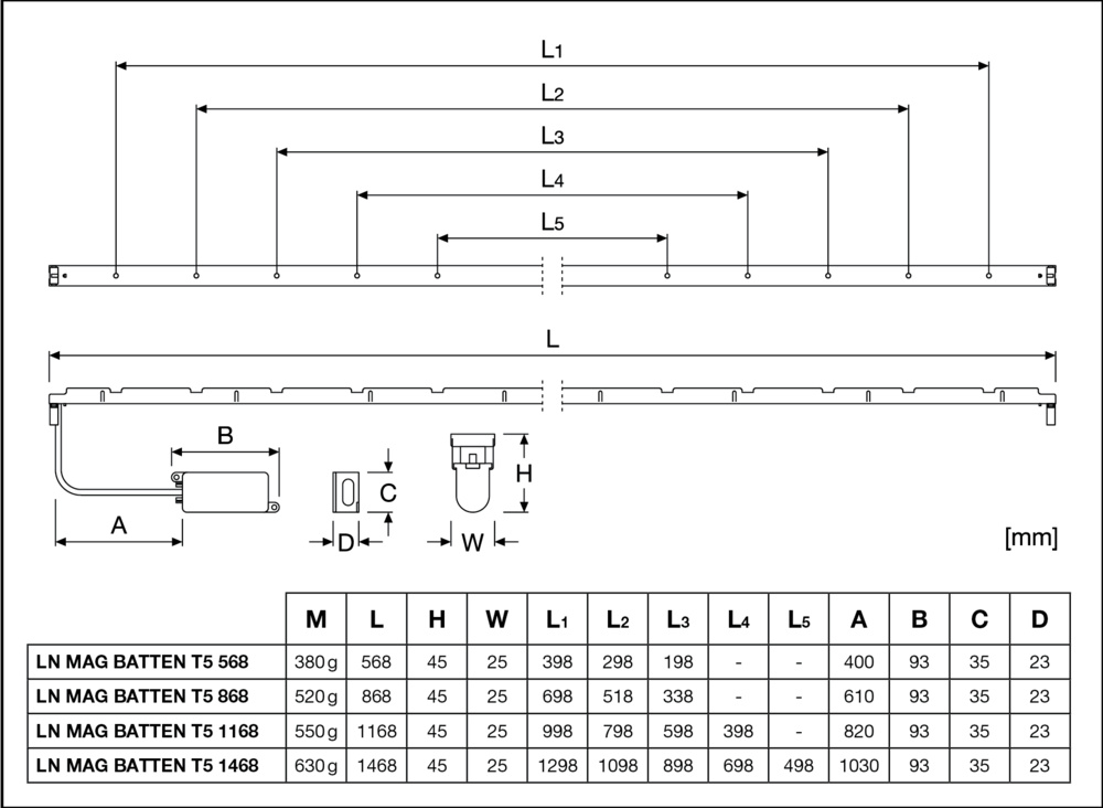 Wkład oprawy LINEAR MAGNETIC BATTEN T5 1168