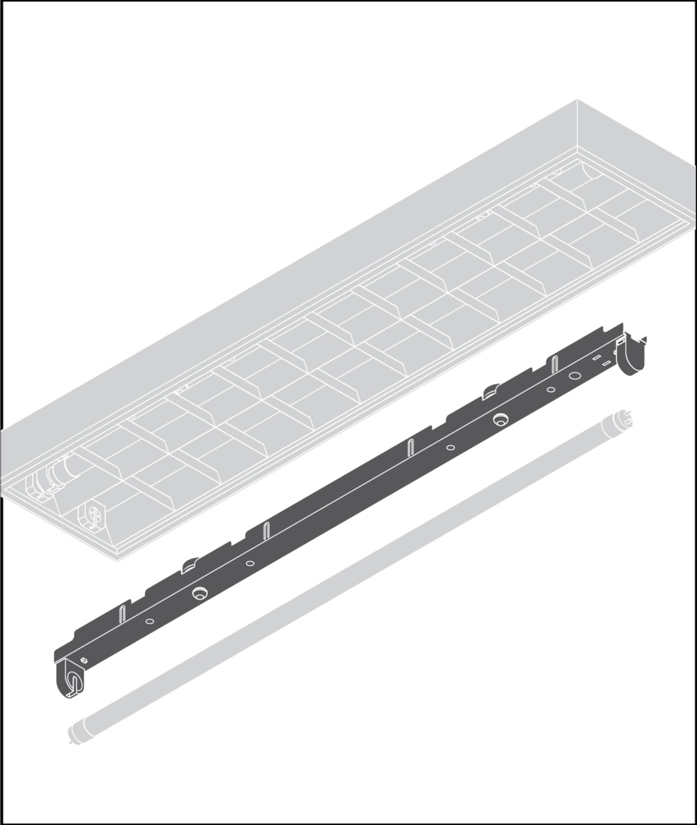 Wkład oprawy do LED TUBE T5 AC. Cechy produktu: Dostępne w 4 różnych długościach: 568 mm, 868 mm, 1168 mm i 1468 mm. Luminaire insert na jedną LED TUBE T5 AC 230V. Pasuje do LED TUBE T5 AC, HE lub HO, 830/840/865. Silne magnesy neodymowe. Zalety produktu: Modernizacja bez całkowitej wymiany istniejących opraw. W razie potrzeby stara oprawa może pozostać zamontowana na suficie podczas procesu przebudowy. W razie potrzeby osprzęt sterujący i okablowanie mogą pozostać w starej oprawie . Łatwa wymiana LED TUBE T5 AC pozwala uczestniczyć w postępie technologii LED. Proste i szybkie rozwiązanie do aktualizacji. Zintegrowany bezpiecznik dla dodatkowego bezpieczeństwa. 5-letnia gwarancja. Obszary zastosowań: Zestaw zamienny do modernizacji istniejących metalowych opraw oświetleniowych (świetlówki T8 i T5) na energooszczędną technologię LED. Biura, budynki publiczne. Supermarkety i domy towarowe. Przemysł. Korytarze, foyer, poczekalnie.