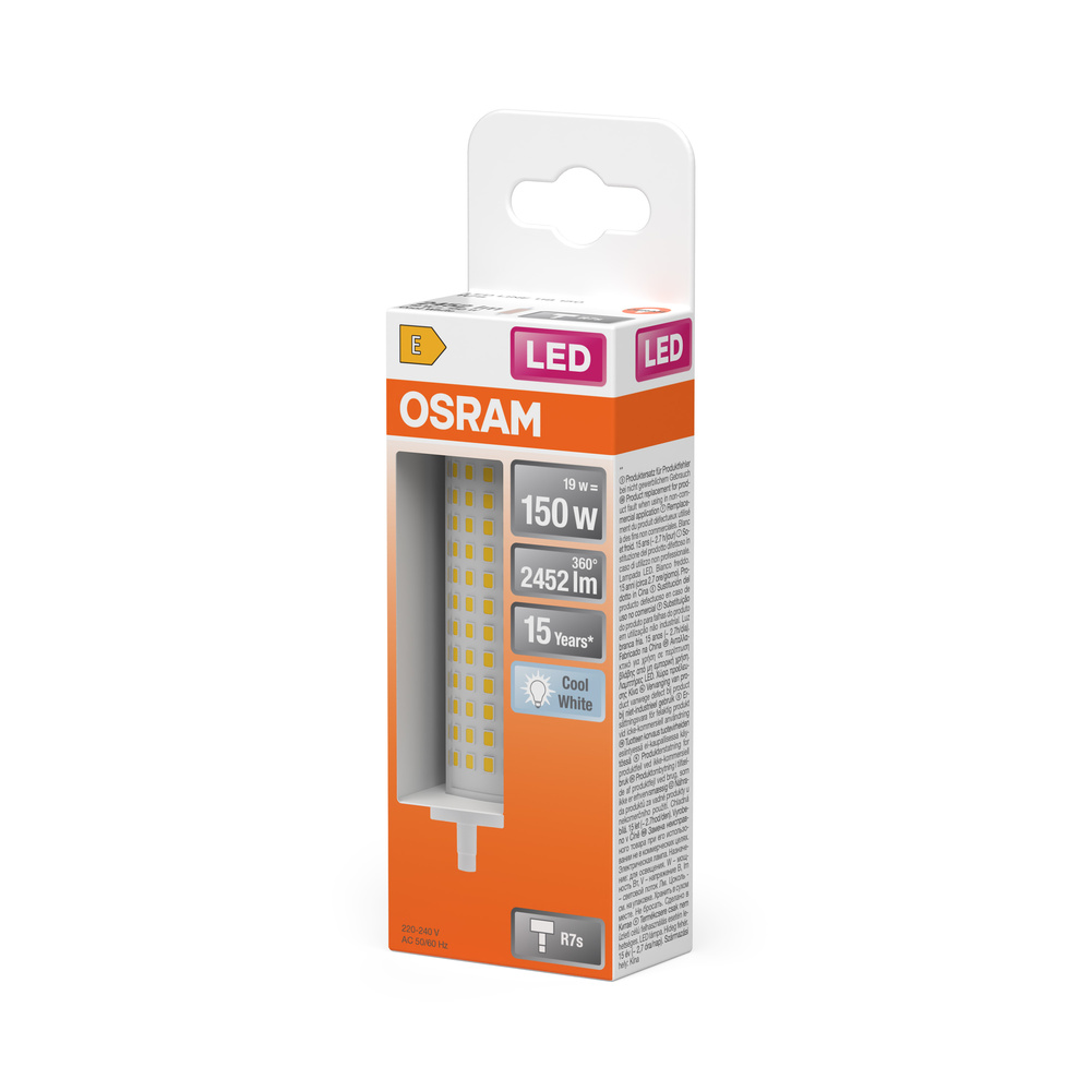 Lampy LED z trzonkiem R7s. Cechy produktu: LED zamiennik żarówek z trzonkiem R7s. Dobra jakość światła, wskaźnik oddawania barw Ra: ≥ 80; stała chromatyczność. Zalety produktu: Dopasowane do większości opraw oświetleniowych R7 dzięki mimośrodowemu typowi trzonka. Równomierny rozsył światła we wszystkich kierunkach. Niskie obciążenie cieplne (w porównaniu ze standardowym produktem referencyjnym). Długa trwałość do 15 000 godzin. 3-letnia gwarancja. Niższe zużycie energii w porównaniu do lamp żarowych lub halogenowych. Obszary zastosowań: Oświetlenie ogólne w miejscach o temperaturach otoczenia od -20 do +40 °C. Do użytku na zewnątrz tylko w odpowiednich oprawach zewnętrznych. Porady dotyczące bezpieczeństwa: Nie dotykaj lampy, jeśli jest stłuczona.. Nie wolno używać, jeśli zewnętrzne źródło światła jest uszkodzone.. Aby zapewnić pełną wydajność oświetlenia i trwałość produktu, zalecane jest demontaż szyby lub osłony oprawy oświetleniowej..