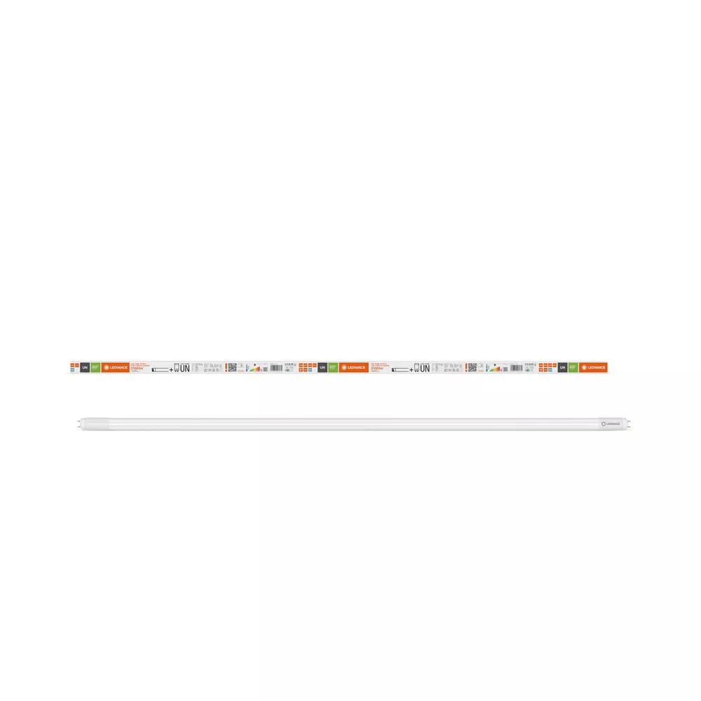 Tuby LED do zasilania przez statecznik elektroniczny (ECG), statecznik magnetyczny (CCG) lub bezpośrednio z sieci zasilającej 230 V, zabezpieczone przed odpryskami szkła. Cechy produktu: Zamiennik LED do klasycznych świetlówek T8 z trzonkiem G13 do stosowania w oprawach CCG, ECG lub na sieci AC. Zgodność z konwencjonalnymi statecznikami i wieloma popularnymi statecznikami elektronicznymi (patrz również compatibility list) i zasilaniem sieciowym. Niskie tętnienie światła zgodnie z UE 2019/2020 (SVM ≤ 0,4 / PstLM ≤ 1). Tuba LED wykonana ze szkła z zabezpieczeniem przed odpryskami. Równomierne oświetlenie. Bez rtęci, zgodne z RoHS. Stopień ochrony: IP20. Trwałość do 60 000 godzin. Zalety produktu: Lampa nie ugina się dzięki rurce wykonanej ze szkła. Szybka, prosta i bezpieczna wymiana bez zmiany okablowania. Oszczędność energii do 66% (w porównaniu ze świetlówką T8). Bardzo duża odporność na obciążenia przełączeniowe. Wysokie natężenie oświetlenia dla zaawansowanych zadań oświetleniowych. Wsparcie wdrażania koncepcji HACCP od produkcji do prezentacji. Nadaje się również do pracy w niskich temperaturach. Obszary zastosowań: Oświetlenie ogólne – dla temperatur otoczenia w zakresie -20…+45 °C. Iluminacja stref produkcji. Strefy i przejścia o dużym natężeniu ruchu. Supermarkety i domy towarowe. Przemysł. Porady prawne: Gdy zostaną użyte do wymiany świetlówki T8, całkowita wydajność energetyczna i rozsył światła zależą od projektu systemu oświetleniowego.. Porady dotyczące bezpieczeństwa: Możliwa praca w zastosowaniach zewnętrznych w odpowiednich oprawach odpornych na wilgoć zgodnie z kartą katalogową i instrukcją instalacji.. Zakres temperatur pracy tub LED jest ograniczony. W przypadku wątpliwości, należy zmierzyć temperaturę w punkcie Tc oznaczonym na lampie w celu weryfikacji.. Do pracy LED TUBE T8 UN z konwencjonalnym statecznikiem, należy wymienić istniejący zapłonnik na zapłonnik LED znajdujący się w opakowaniu tuby LED.. Wszystkie podłączenia elektryczne muszą być wykonane przez osobę wykwalifikowaną.. Nie nadaje się do oświetlenia awaryjnego..