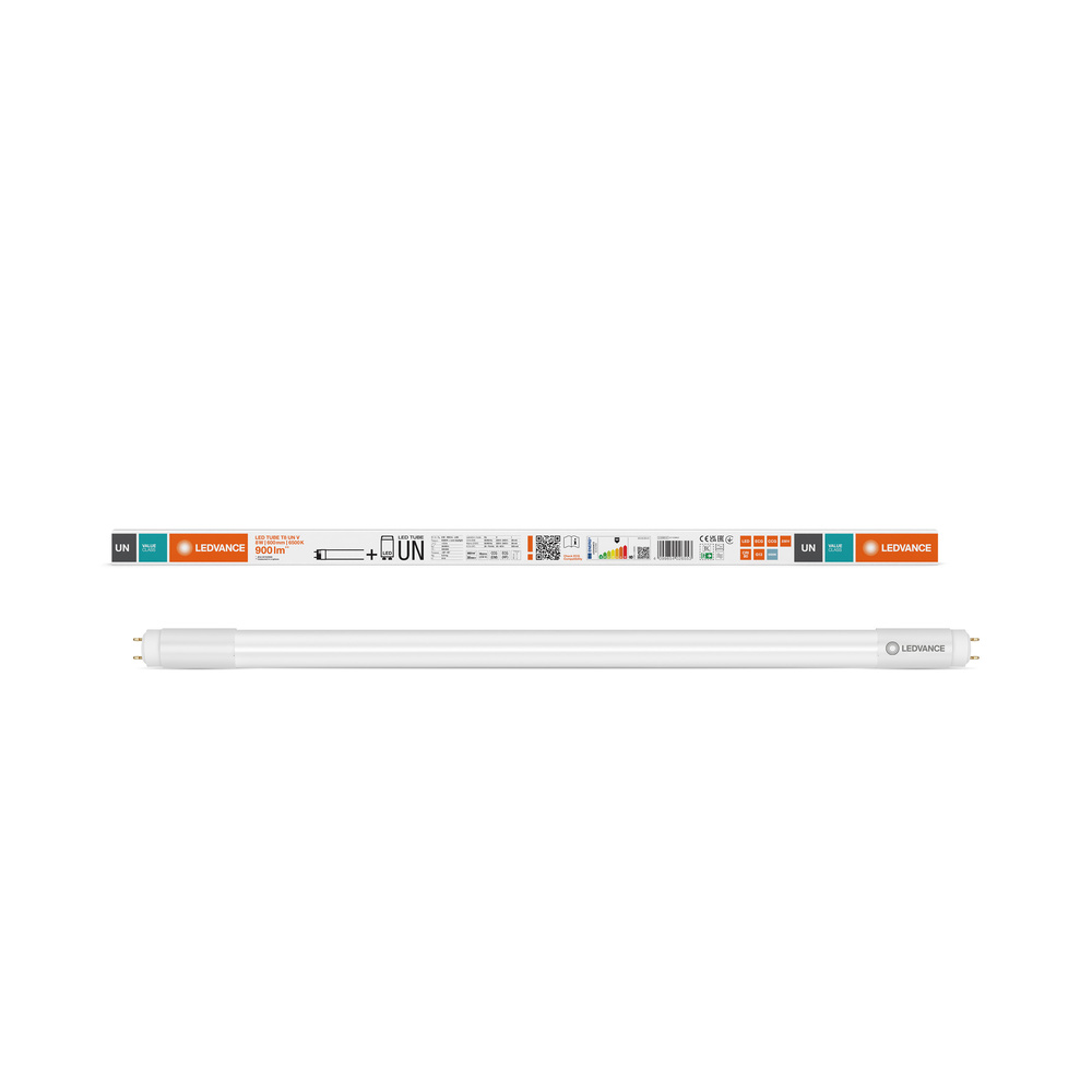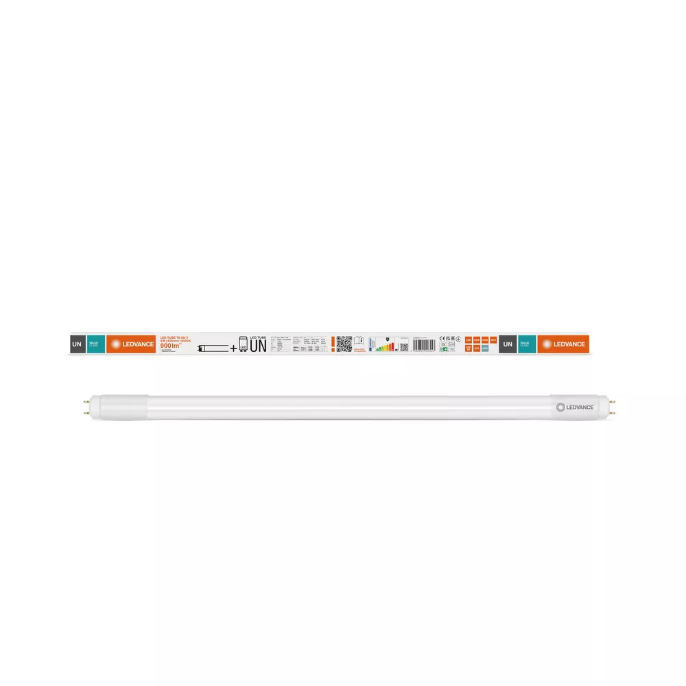 Tuby LED do zasilania przez statecznik elektroniczny (ECG), statecznik magnetyczny (CCG) lub bezpośrednio z sieci zasilającej 230 V. Cechy produktu: Zamiennik LED do klasycznych świetlówek T8 z trzonkiem G13 do stosowania w oprawach CCG, ECG lub na sieci AC. Zgodność z konwencjonalnymi statecznikami i wieloma popularnymi statecznikami elektronicznymi (patrz również compatibility list) i zasilaniem sieciowym. Niskie tętnienie światła zgodnie z UE 2019/2020 (SVM ≤ 0,4 / PstLM ≤ 1). Rurka wykonana ze szkła. Równomierne oświetlenie. Bez rtęci, zgodne z RoHS. Stopień ochrony: IP20. Trwałość: do 30 000 h. Zalety produktu: Lampa nie ugina się dzięki rurce wykonanej ze szkła. Szybka, prosta i bezpieczna wymiana bez zmiany okablowania. Oszczędność energii do 58% (w porównaniu do świetlówki T8). Bardzo duża odporność na obciążenia przełączeniowe. Nadaje się również do pracy w niskich temperaturach. Obszary zastosowań: Oświetlenie ogólne – dla temperatur otoczenia w zakresie -20…+45 °C. Korytarze, klatki schodowe, garaże. Przemysł. Domy towarowe. Chłodnie i magazyny. Zastosowania domowe. Supermarkety i domy towarowe. Porady prawne: Gdy zostaną użyte do wymiany świetlówki T8, całkowita wydajność energetyczna i rozsył światła zależą od projektu systemu oświetleniowego.. Porady dotyczące bezpieczeństwa: Możliwa praca w zastosowaniach zewnętrznych w odpowiednich oprawach odpornych na wilgoć zgodnie z kartą katalogową i instrukcją instalacji.. Zakres temperatur pracy tub LED jest ograniczony. W przypadku wątpliwości, należy zmierzyć temperaturę w punkcie Tc oznaczonym na lampie w celu weryfikacji.. Do pracy LED TUBE T8 UN z konwencjonalnym statecznikiem, należy wymienić istniejący zapłonnik na zapłonnik LED znajdujący się w opakowaniu tuby LED.. Wszystkie podłączenia elektryczne muszą być wykonane przez osobę wykwalifikowaną.. Nie nadaje się do oświetlenia awaryjnego..