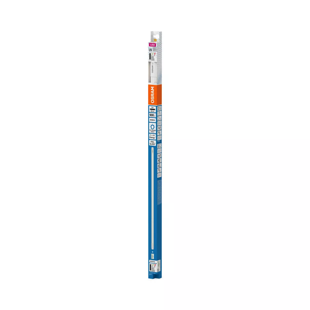 Tuby LED do zasilania przez stateczniki elektroniczne i tradycyjny układ zasilający (dławik magnetyczny) . Cechy produktu: Zamienniki LED do klasycznych świetlówek T8 z trzonkiem G13 do stosowania w oprawach z tradycyjnym układem zasilającym i wielu popularnych oprawach ze statecznikiem elektronicznym (zobacz listę kompatybilności) . Wykonana ze szkła tuba LED T8 z trzonkiem G13. Niskie tętnienie światła zgodnie z UE 2019/2020 (SVM ≤ 0,4 / PstLM ≤ 1). Bez rtęci, zgodne z RoHS. Stopień ochrony: IP20. Zalety produktu: Wysoki stopień jednorodności barw. Oszczędność energii do 58% (w porównaniu do świetlówki T8). Natychmiastowy zapłon bez migania. Obszary zastosowań: Oświetlenie ogólne – dla temperatur otoczenia w zakresie -20…+45 °C. Korytarze, klatki schodowe, garaże. Zastosowania domowe. Porady prawne: Gdy zostaną użyte do wymiany świetlówki T8, całkowita wydajność energetyczna i rozsył światła zależą od projektu systemu oświetleniowego.. Porady dotyczące bezpieczeństwa: Możliwa praca w zastosowaniach zewnętrznych w odpowiednich oprawach odpornych na wilgoć zgodnie z kartą katalogową i instrukcją instalacji.. Wszystkie podłączenia elektryczne muszą być wykonane przez osobę wykwalifikowaną.. Przed instalacją należy odłączyć zasilanie.. Nie nadaje się do oświetlenia awaryjnego..