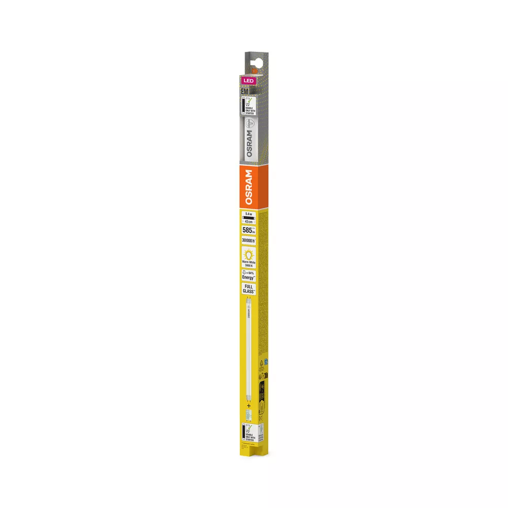 Ekonomiczne tuby LED do zasilania przez stateczniki magnetyczne (CCG). Cechy produktu: Zamienniki LED do klasycznych świetlówek T8 z trzonkiem G13 do stosowania w oprawach z konwencjonalnym układem zasilającym. Wykonana ze szkła tuba LED T8 z trzonkiem G13. Niskie tętnienie światła zgodnie z UE 2019/2020 (SVM ≤ 0,4 / PstLM ≤ 1). Bez rtęci, zgodne z RoHS. Zasilanie pojedyncze i równoległe z konwencjonalnym układem zasilającym (wersje ≤0,9 m). Stopień ochrony: IP20. Zalety produktu: Wysoki stopień jednorodności barw. Oszczędność energii do 69% w porównaniu z konwencjonalnymi świetlówkami T8. Natychmiastowy zapłon bez migania. Obszary zastosowań: Oświetlenie ogólne – dla temperatur otoczenia w zakresie -20…+45 °C. Korytarze, klatki schodowe, garaże. Zastosowania domowe. Wyposażenie / Akcesoria: Odpowiednie do pracy ze statecznikiem magnetycznym. Porady prawne: Gdy zostaną użyte do wymiany świetlówki T8, całkowita wydajność energetyczna i rozsył światła zależą od projektu systemu oświetleniowego.. Porady dotyczące bezpieczeństwa: Możliwa praca w zastosowaniach zewnętrznych w odpowiednich oprawach odpornych na wilgoć zgodnie z kartą katalogową i instrukcją instalacji.. Punkt Tc znajduje się pod etykietą z przodu lampy.. Nie nadaje się do oświetlenia awaryjnego.. Wszystkie podłączenia elektryczne muszą być wykonane przez osobę wykwalifikowaną.. Przed instalacją należy odłączyć zasilanie..