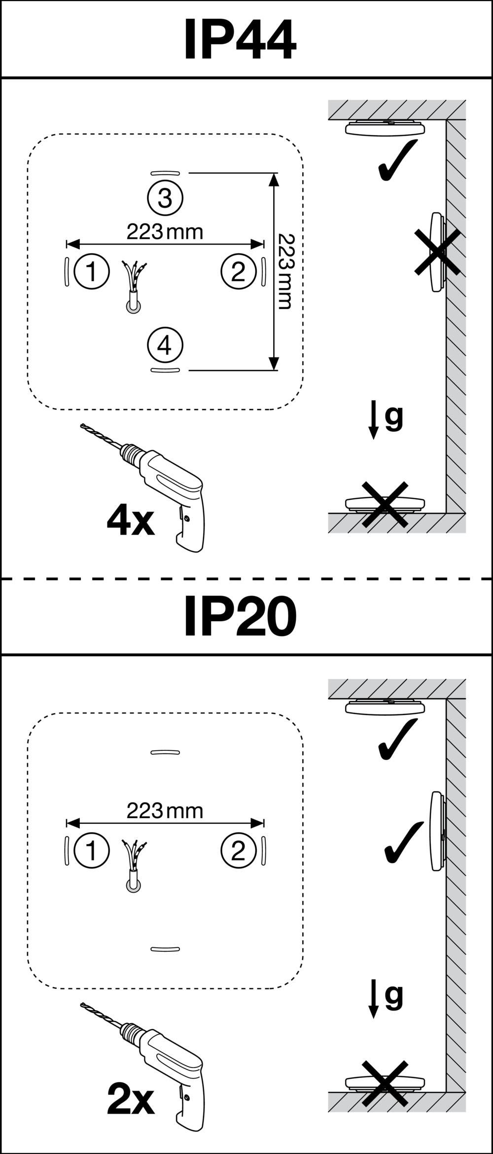 Oprawa ścienna i sufitowa o stopniu ochrony IP44 z możliwością wyboru temperatury barwowej światła (CCT). Cechy produktu: Stopień ochrony: IP44 (montaż na suficie), IP20 (montaż na ścianie). Odporność na udar: IK03. Obudowa z metalu, klosz z PMMA. Temperatura otoczenia podczas pracy: -20…+40°C. Tylko do użytku wewnętrznego nie nadaje się do zastosowania na zewnątrz. Zalety produktu: Oprawa wewnętrzna o wysokiej skuteczności świetlnej. Wysoce wszechstronne dzięki możliwości wyboru temperatury barwowej światła (CCT), 3000K, 4000K i 5000K. Oszczędność energii do 55 % w porównaniu z oprawami świetlówkowymi. Łatwa i szybka instalacja. Bardzo jednorodne światło. 5-letnia gwarancja. Obszary zastosowań: Korytarze. Schody. Łazienki. Hole. Wyposażenie / Akcesoria: Opcjonalnie dostępna wymienna pokrywa.