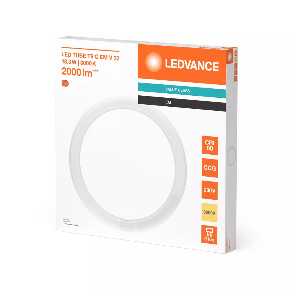 Okrągła tuba LED zasilana przez stateczniki magnetyczne i bezpośrednio napięciem sieciowym.. Cechy produktu: Zamiennik LED dla klasycznych świetlówek T9 w oprawach oświetleniowych ze statecznikami elektronicznymi. Równomierne oświetlenie. Trwałość: do 30 000 h. Bez rtęci, zgodne z RoHS. Zalety produktu: Szybka, prosta i bezpieczna wymiana bez zmiany okablowania. Oszczędność energii do 50 % (w porównaniu do świetlówki T9). Nadaje się również do pracy w niskich temperaturach. Możliwe bezpośrednie zasilanie z sieci 230 V AC. Obszary zastosowań: Oświetlenie ogólne – dla temperatur otoczenia w zakresie -20…+45 °C. Korytarze, klatki schodowe, garaże. Zastosowania domowe. Zastosowania dekoracyjne. Porady prawne: Przy użytkowaniu zamiennika świetlówki T9 całkowita sprawność energetyczna i rozsył strumienia świetlnego zależą od rodzaju systemu oświetlenia.. Porady dotyczące bezpieczeństwa: Nieprzystosowane do pracy z elektronicznymi układami zasilającymi.. Możliwa praca w zastosowaniach zewnętrznych w odpowiednich oprawach odpornych na wilgoć zgodnie z kartą katalogową i instrukcją instalacji.. Wszystkie podłączenia elektryczne muszą być wykonane przez osobę wykwalifikowaną.. Przed instalacją należy odłączyć zasilanie.. Oprawa nie nadaje się do użytku awaryjnego..