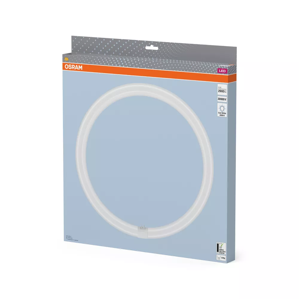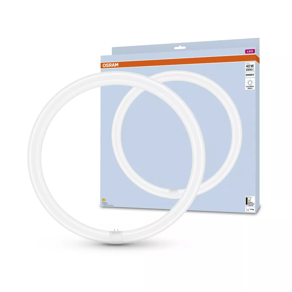 Okrągłe tuby LED do zasilania przez tradycyjny układ zasilający (dławik magnetyczny, CCG). Cechy produktu: Zamiennik LED dla klasycznych świetlówek T9 w oprawach oświetleniowych ze statecznikami elektronicznymi. Równomierne oświetlenie. Trwałość: do 30 000 h. Bez rtęci, zgodne z RoHS. Zalety produktu: Szybka, prosta i bezpieczna wymiana bez zmiany okablowania. Oszczędność energii do 50% (w porównaniu ze świetlówkami T9 ze statecznikami elektronicznymi). Nadaje się również do pracy w niskich temperaturach. Obszary zastosowań: Oświetlenie ogólne – dla temperatur otoczenia w zakresie -20…+45 °C. Korytarze, klatki schodowe, garaże. Zastosowania domowe. Zastosowania dekoracyjne. Porady prawne: Przy użytkowaniu zamiennika świetlówki T9 całkowita sprawność energetyczna i rozsył strumienia świetlnego zależą od rodzaju systemu oświetlenia.. Porady dotyczące bezpieczeństwa: Nieprzystosowane do pracy z elektronicznymi układami zasilającymi.. Możliwa praca w zastosowaniach zewnętrznych w odpowiednich oprawach odpornych na wilgoć zgodnie z kartą katalogową i instrukcją instalacji.. Wszystkie podłączenia elektryczne muszą być wykonane przez osobę wykwalifikowaną.. Przed instalacją należy odłączyć zasilanie.. Nie nadaje się do oświetlenia awaryjnego.. Nie dotykaj lampy, jeśli jest stłuczona.. Nie wolno używać, jeśli zewnętrzne źródło światła jest uszkodzone..