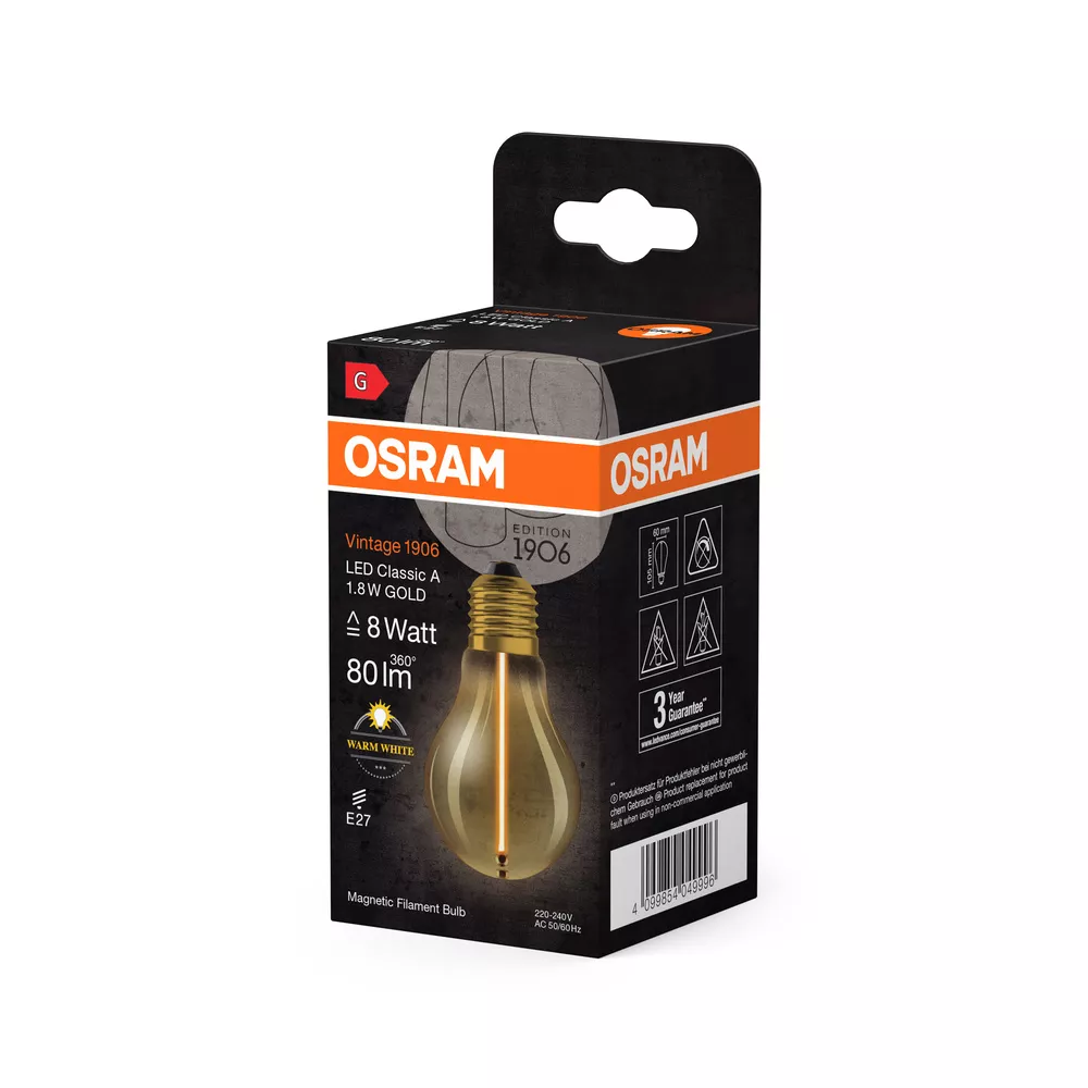 Lampa VINTAGE 1906® LED Classic A, Globe and EDISON WITH FILAMENT-MAGNETIC STYLE 1.8W 827 Gold E27