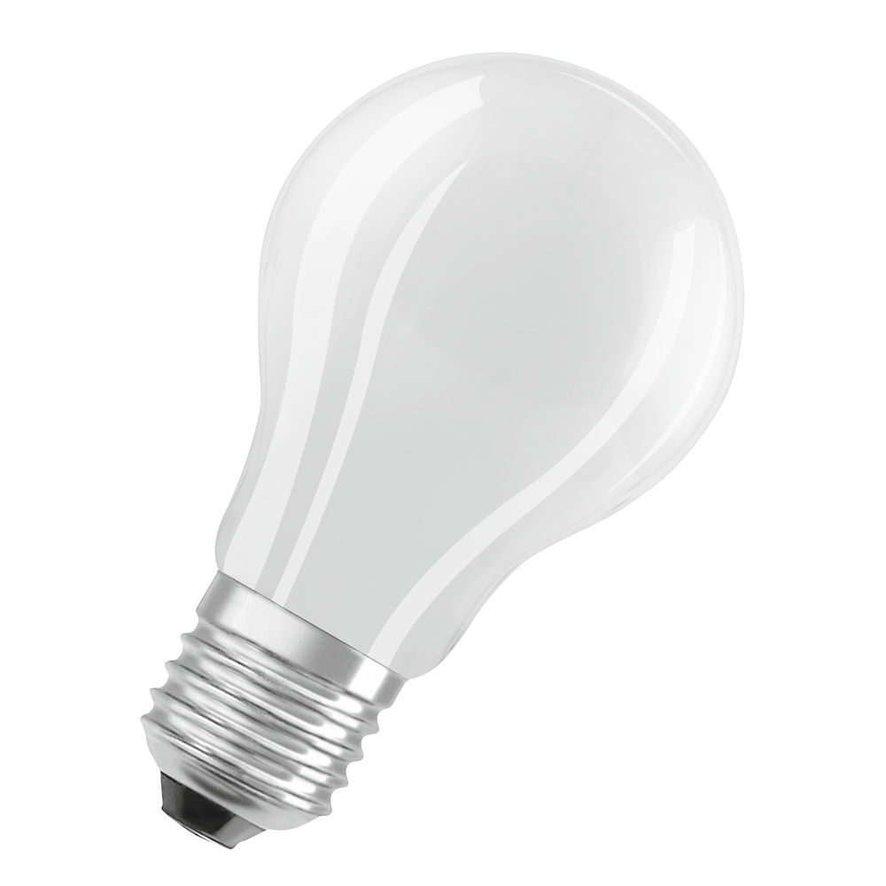 Ściemnialne lampy LED , klasyczny kształt żarówki, klasa efektywności energetycznej B. Cechy produktu: Lampy LED dla napięcia sieciowego. Kąt wiązki światła: do 300°. Długa trwałość do 50 000 godzin. Bardzo duża liczba cykli przełączania 500 000. Bardzo wysoka skuteczność świetlna do 187 lm/W. Ściemnialne. Zalety produktu: Lampy wyposażone w innowacyjną technologię „włókien” LED. Wygląd, wymiary i strumień świetlny porównywalne z żarówkami halogenowymi. Niskie zużycie energii. Natychmiast 100 % światła, bez czasu nagrzewania. Niskie tętnienie światła. Obszary zastosowań: Doskonałe rozwiązanie do instalacji dekoracyjnych. Zastosowania domowe. Oświetlenie ogólne. Eksploatacja na zewnątrz wyłącznie w oprawach zewnętrznych (co najmniej IP65). Porady dotyczące bezpieczeństwa: Nie dotykaj lampy, jeśli jest stłuczona.. Nie wolno używać, jeśli zewnętrzne źródło światła jest uszkodzone..