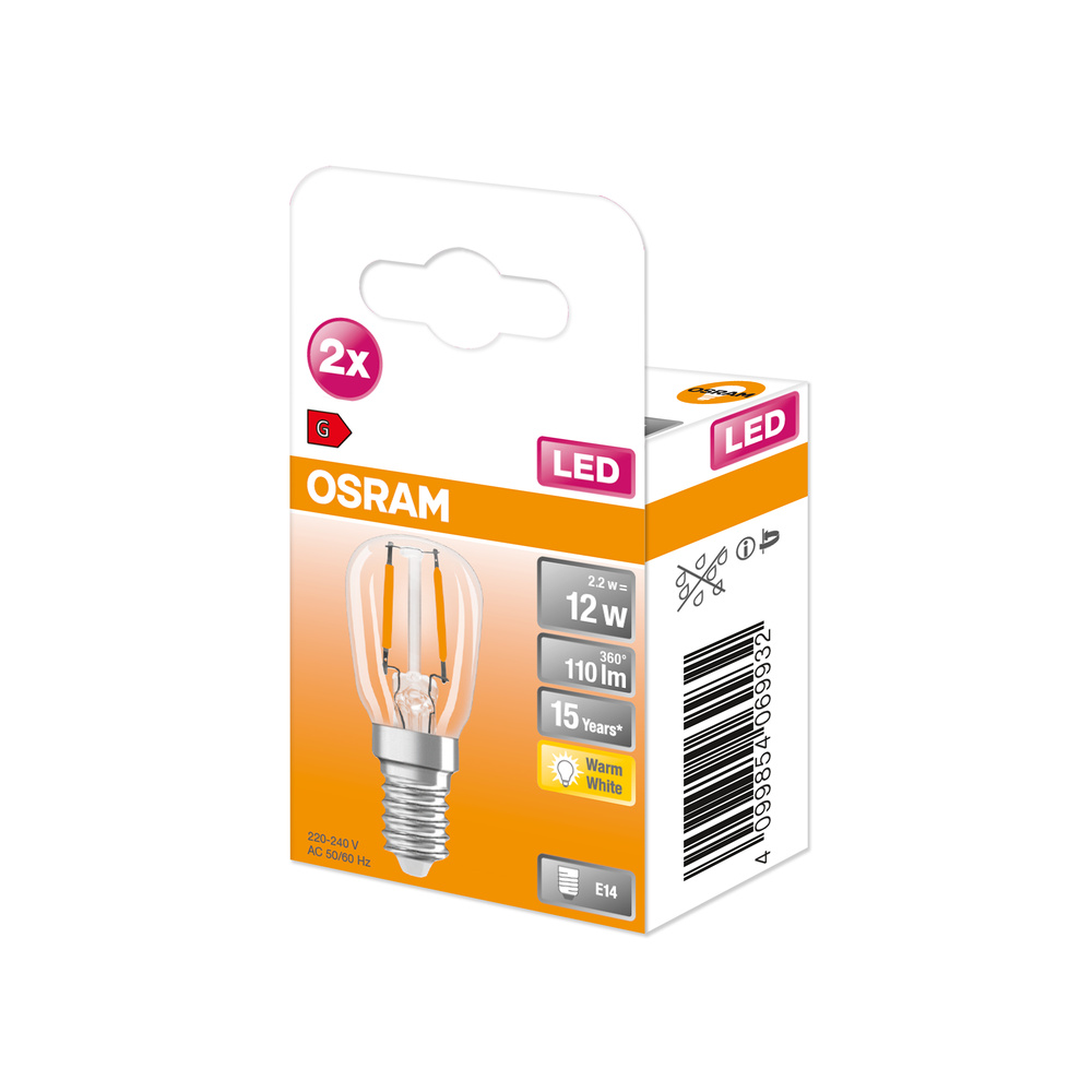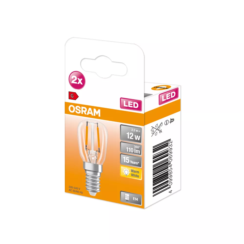 Małe specjalne lampy LED z trzonkiem E14. Cechy produktu: Zamienniki LED dla konwencjonalnych żarówek wysokonapięciowych. Dobra jakość światła, wskaźnik oddawania barw Ra: ≥ 80; stała chromatyczność. Zalety produktu: Wyjątkowo małe wymiary. Równomierny rozsył światła we wszystkich kierunkach. Idealne do zastosowania dekoracyjnego oraz do eksploatacji bez oprawy. Długa trwałość do 15 000 godzin. 3-letnia gwarancja. Niższe zużycie energii w porównaniu do lamp żarowych lub halogenowych. Obszary zastosowań: Zamrażarki domowe. Nastrojowe oświetlenie akcentujące w całym domu. Małe oprawy designerskie. Maszyny szwalnicze. Do użytku na zewnątrz tylko w odpowiednich oprawach zewnętrznych. Porady dotyczące bezpieczeństwa: Nie dotykaj lampy, jeśli jest stłuczona.. Nie wolno używać, jeśli zewnętrzne źródło światła jest uszkodzone..