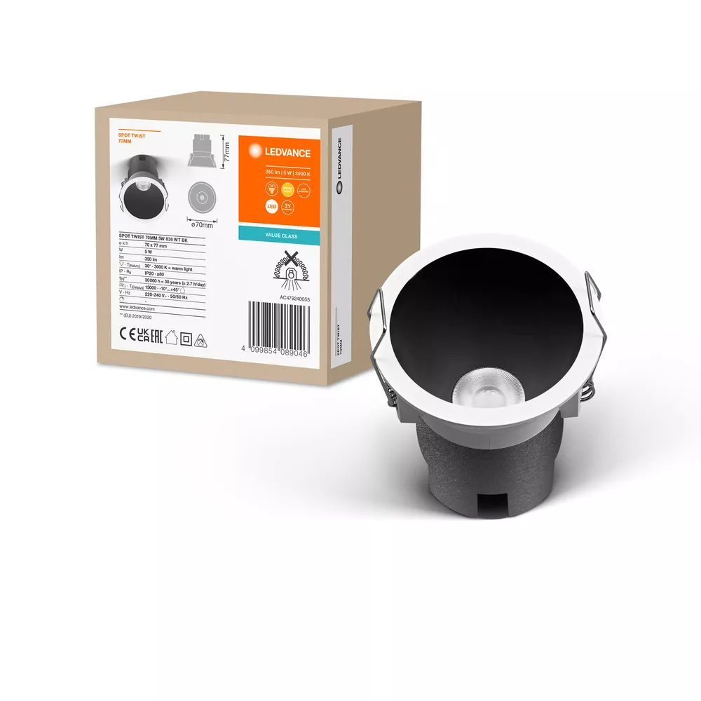 Oprawa LED SPOT RECESS TWIST PRO 70mm 5W 3000K White Black