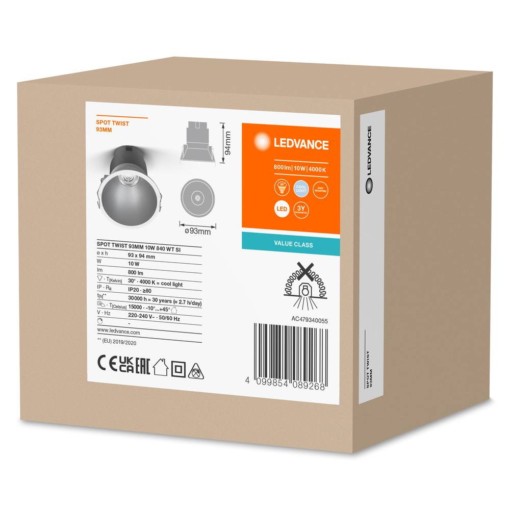 Reflektor do wbudowania ze zintegrowaną LED. Cechy produktu: Sprężyny zabezpieczone podkładkami silikonowymi. Zalety produktu: Aż do 90 % oszczędność energii w porównaniu z punktowymi oprawami halogenowymi. Łatwa instalacja i podłączenie elektryczne dzięki beznarzędziowym złączom elektrycznym. Obszary zastosowań: Zastosowania wewnętrzne. Oświetlenie ogólne. Wyposażenie / Akcesoria: Złącze nie jest dołączone. Porady dotyczące bezpieczeństwa: Wszystkie podłączenia elektryczne muszą być wykonane przez osobę wykwalifikowaną.. Uwaga, ryzyko porażenia prądem.. Oprawy nie nadają się do pokrywania materiałem termoizolacyjnym.. Sprawdź przydatność ściany i sufitu. Jeśli nie jesteś pewien, zasięgnij profesjonalnej porady..