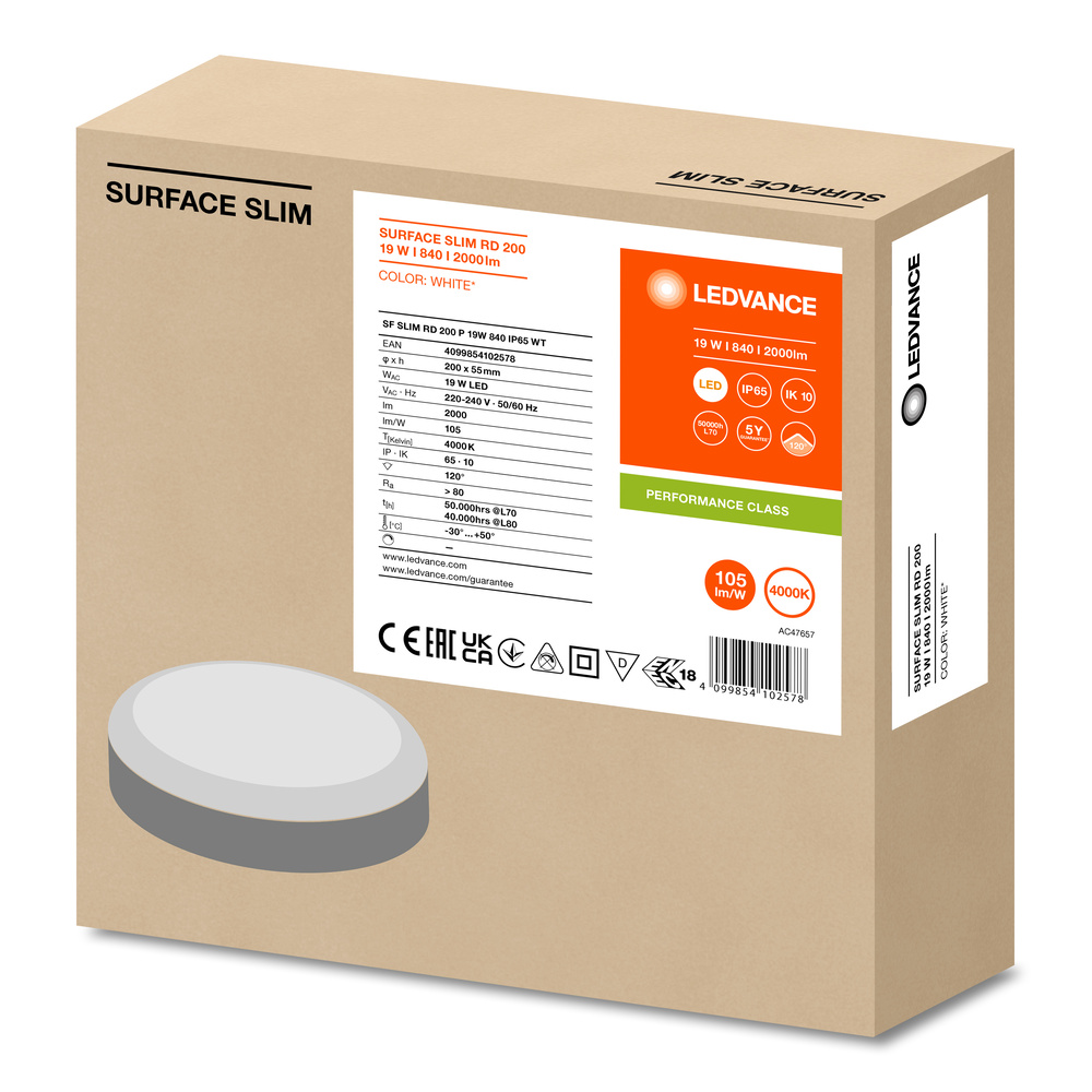 Oprawa ścienna SURFACE SLIM RD 200 P 19W 840 IP65 EUE LEDV