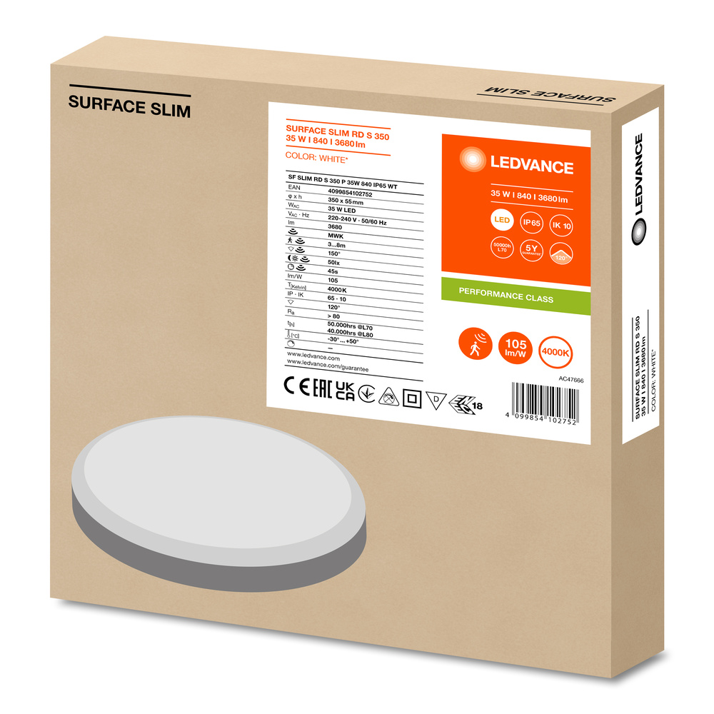 Oprawa ścienna SURFACE SLIM RD S 350 P 35W 840 IP65 EUE LEDV