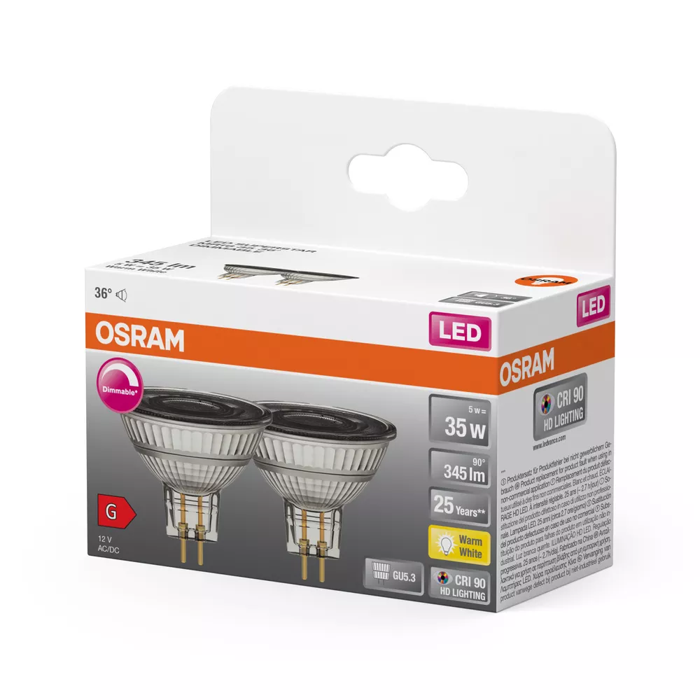 Niskonapięciowe reflektorowe lampy LED MR16 z możliwością regulacji strumienia. Cechy produktu: Zamienniki LED dla konwencjonalnych żarówek niskonapięciowych. Ściemnialne (za pomocą licznych popularnych ściemniaczy, zobacz więcej www.ledvance.pl/dim). Lampy niezawierające rtęci. Zalety produktu: Długa trwałość do 25 000 godzin. Niższe zużycie energii w porównaniu do lamp żarowych lub halogenowych. Wysoka spójność barw dzięki precyzyjnemu sortowaniu struktur półprzewodnikowych. Łatwa wymiana żarówek halogenowych dzięki kompaktowej w pełni szklanej konstrukcji i pojedynczemu układowi optycznemu. Idealne, ekonomiczne reflektory kierunkowe. Obszary zastosowań: Sklepy. Hotele. Muzea, galerie sztuki. Pomieszczenia mieszkalne. Jako światło wpuszczane do oznaczania przejść, drzwi, schodów itp.. Oświetlenie kierunkowe akcentujące. Szafki do ekspozycji i witryny sklepowe. Oświetlenie kierunkowe obiektów wrażliwych na ciepło, np. żywności roślin itp.. Do użytku na zewnątrz tylko w odpowiednich oprawach zewnętrznych. Porady dotyczące bezpieczeństwa: Nie dotykaj lampy, jeśli jest stłuczona.. Nie wolno używać, jeśli zewnętrzne źródło światła jest uszkodzone..