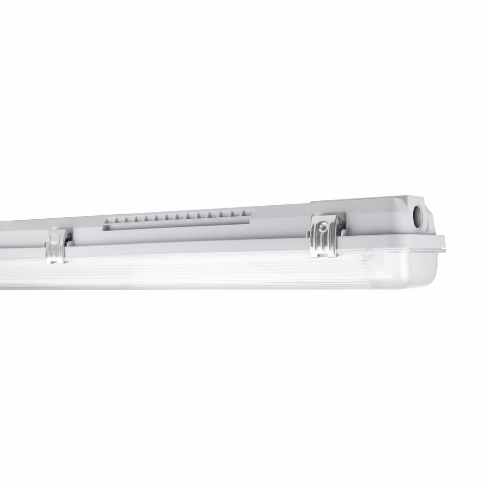 Oprawa DAMP PROOF do tub LED T8 z metalową podstawą (MT). Cechy produktu: Obudowa oprawy, dostępna na 1 lub 2 tuby LED T8. Nadaje się do LED TUBE T8 EM i LED TUBE T8 CONNECTED. Stopień ochrony: IP65. Zintegrowany bezpiecznik elektryczny. W tym tacka metalowa (MT). Zalety produktu: Łatwa i szybka instalacja. Wcześniej przygotowane oprzewodowanie ułatwia instalację tub LED. Instalacja bez użycia narzędzi. Trwała obudowa. Zrównoważone rozwiązanie dzięki wymiennym źródłom światła. 5-letnia gwarancja. Obszary zastosowań: Parkingi, magazyny, obszary produkcyjne. Parkingi i przejścia podziemne. Garaże. Wyposażenie / Akcesoria: Wszystkie wymagane akcesoria w zestawie. Dostępny zestaw oprzewodowania przelotowego.