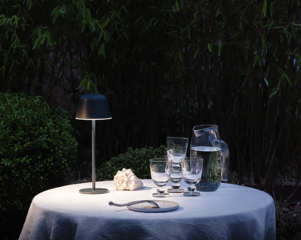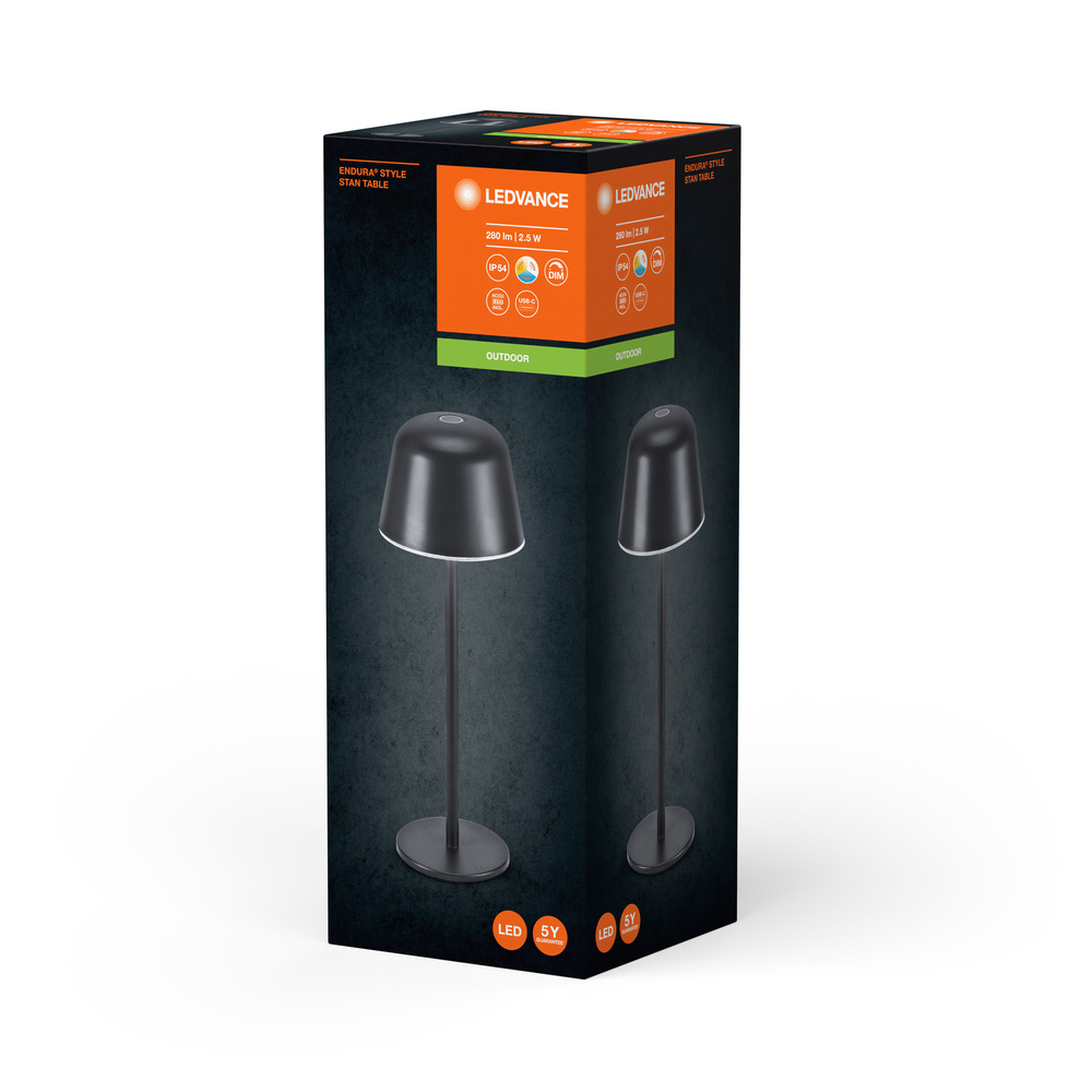 Zewnętrzna, akumulatorowa oprawa ze zmianą barwy światła i funkcją ściemniania. Cechy produktu: Min. 6,5 godzin świecenia. Funkcja pamięci jasności świecenia. Aluminiowa obudowa. Klosz wykonany z poliwęglanu (PC).. Przełącznik temperatury barwowej (CCT): 2700 K, 4000 K, 6500 K. Stopień ochrony: IP54. Zalety produktu: Przenośna oprawa stojąca. Akumulator o dużej pojemności - 4400 mAh. Przełączanie i płynne ściemnianie za pomocą czujnika dotykowego: 5%-100%. Obszary zastosowań: Na zewnątrz, gdzie potrzebne jest światło, ale nie ma gniazdka. Patia, balkony. Wyposażenie / Akcesoria: W zestawie przewód do ładowania. Porady dotyczące bezpieczeństwa: Aby ograniczyć ryzyko uduszenia, elastyczne przewody PODŁĄCZONE do tej oprawy należy solidnie przymocować do ściany, jeśli znajdują się w zasięgu ręki.. Jeśli komora baterii (jeśli dotyczy) nie zamyka się bezpiecznie, zaprzestań używania produktu i trzymaj go z dala od dzieci. Jeśli podejrzewasz, że baterie mogły zostać połknięte lub umieszczone w jakiejkolwiek części ciała, natychmiast zwróć się o pomoc lekarską.. Prosimy unikać: Maksymalna temperatura otoczenia: +35 °C. Wymiana baterii na nieprawidłowy typ, który może obejść zabezpieczenie (na przykład w przypadku niektórych typów baterii litowych). Wysokość podczas pracy: 2000 m. Utylizacja baterii w ogniu lub gorącym piekarniku, lub mechaniczne zgniatanie lub cięcie baterii, co może spowodować wybuch..