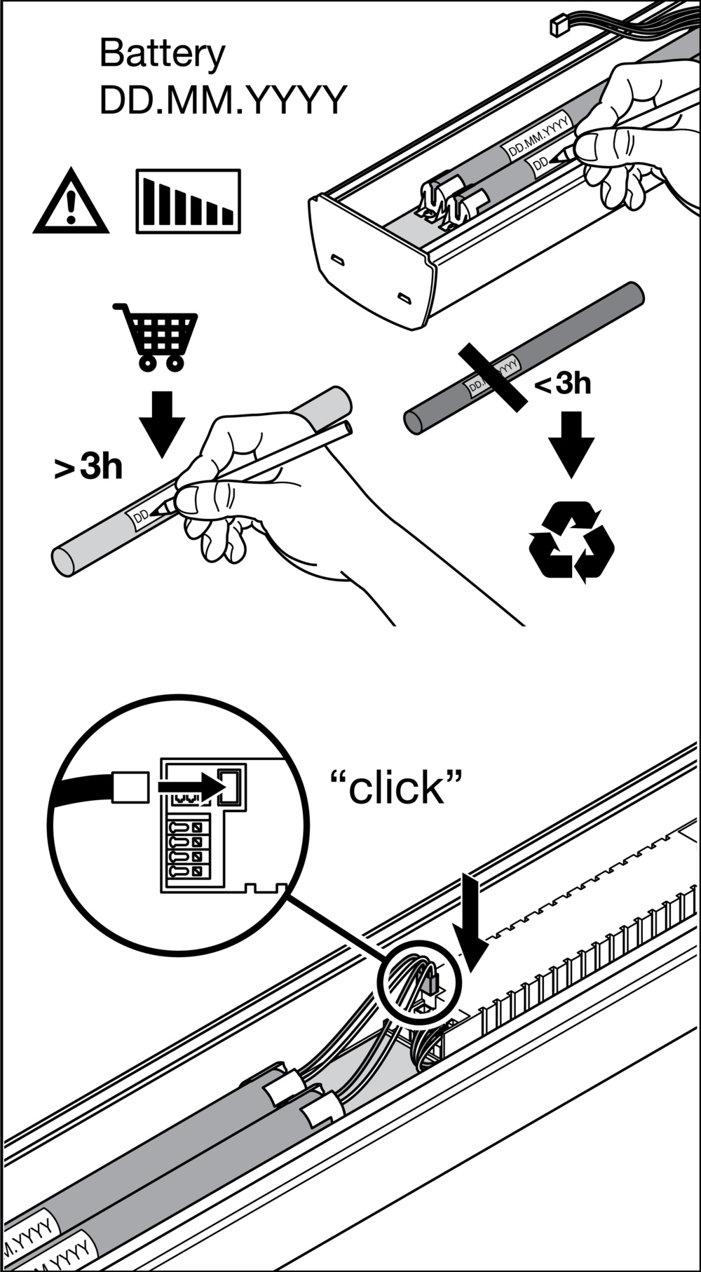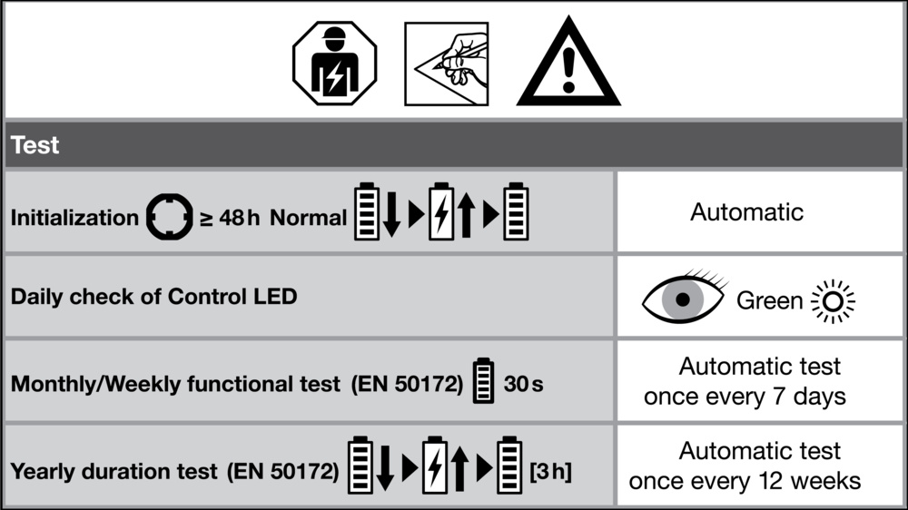 Wkłady oświetleniowe z asymetrycznym rozsyłem światła Wallwasher do oświetlenia standardowego i awaryjnego, do 175 lm/W. Cechy produktu: Certyfikaty zgodne z normami europejskimi (EN 60598-1:2015; EN 60598-2-22:2014). Oprawa oświetleniowa przystosowana do oświetlenia normalnego i awaryjnego. Niezależne oprawy oświetleniowe. Funkcja oświetlenia awaryjnego: czas rozładowania baterii wynosi 3 godziny. Funkcja testowania oświetlenie awaryjnego: automatyczne testowanie (AT). Technologia baterii: LiFePO4. Podkładka kątowa rozsyłu światła: 1x40°. Mocowanie „na klik” wykorzystujące inteligentne przyciski. Stałe zaczepy oprawy oświetleniowej. Obudowa z blachy stalowej. Zalety produktu: Bezproblemowa integracja opraw oświetleniowych z funkcją oświetlenia awaryjnego w oświetleniu ogólnym. Łatwa instalacja elektryczna dzięki wyposażeniu w zasilacz oraz baterię do zasilania oświetlenia awaryjnego. Proste testowanie opraw oświetleniowych z funkcją oświetlenia awaryjnego dzięki zintegrowanej funkcji automatycznego testowania. Wygodna wizualizacja wyników automatycznego testowania za pomocą dostarczonego sterowania LED. Działanie zintegrowanej funkcji automatycznego testowania dzięki baterii LiFePO4 o dużej trwałości i 3-godzinnym czasem rozładowania. Wysoka skuteczność świetlna podczas normalnej pracy. 3-letnia gwarancja. Rozsył światła Wall Washer do ukierunkowanego oświetlenia ścian. Łatwa instalacja, podłączenie nie wymaga zastosowania narzędzi. Energooszczędność i ekonomiczność. Różnorodne zastosowanie dzięki różnym wartościom strumienia świetlnego i kątom rozsyłu światła. Obszary zastosowań: Oświetlenie awaryjne dróg ewakuacyjnych. Oświetlenie zapobiegające powstawaniu paniki. Budynki wymagające 3-godzinnej pracy oświetlenia awaryjnego. Bezpośredni zamiennik świetlówkowych opraw oświetleniowych. Hale przemysłowe, magazyny wysokiego składowania, garaże, sklepy z narzędziami. Wyposażenie / Akcesoria: Szyna montażowa ze stałym zintegrowanym 8-biegunowym przewodem.