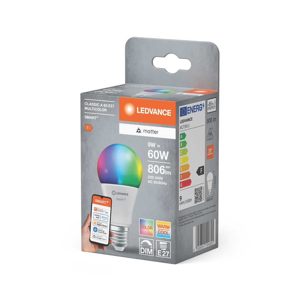 Inteligentna żarówka LED SMART+ MATTER Classic A60 9W 827...865 Multicolor E27