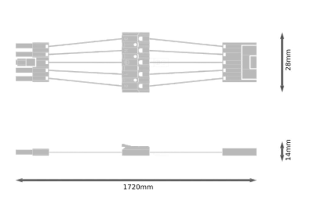 Zestaw przewodów i wtyczek do instalacji linii świetlnych, 1200 mm i 1500 mm. Cechy produktu: Zestaw przewodów do okablowania przelotowego do linii świetlnych (okablowanie wewnętrzne 5 x 2,5 mm² i wtyczka końcowa, wtyczka AC męska/żeńska). Długość przewodu: 1,2 m lub 1,5 m. Zalety produktu: Łatwe i szybkie podłączenia elektryczne w przypadku instalacji linii świetlnych. Podłączenie przewodów za pomocą wtyczki sieciowej. Porady dotyczące bezpieczeństwa: Wszystkie podłączenia elektryczne muszą być wykonane przez osobę wykwalifikowaną..
