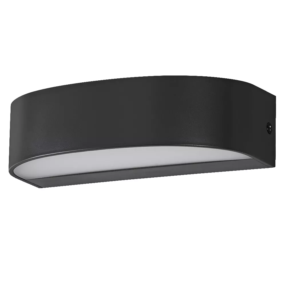 Oprawy ścienne z ciemnoszarą obudową i stopniem ochrony IP65. Cechy produktu: Trwały materiał obudowy. Stopień ochrony: IP65. Zalety produktu: Łatwa i szybka instalacja. Obszary zastosowań: Dekoracyjne oświetlenie zewnętrzne. Elewacje budynków. Oświetlenie awaryjne. Patia, balkony. Wyposażenie / Akcesoria: Kompletne akcesoria do montażu i podłączenia w zestawie. Porady dotyczące bezpieczeństwa: Wszystkie podłączenia elektryczne muszą być wykonane przez osobę wykwalifikowaną.. Uwaga, ryzyko porażenia prądem..