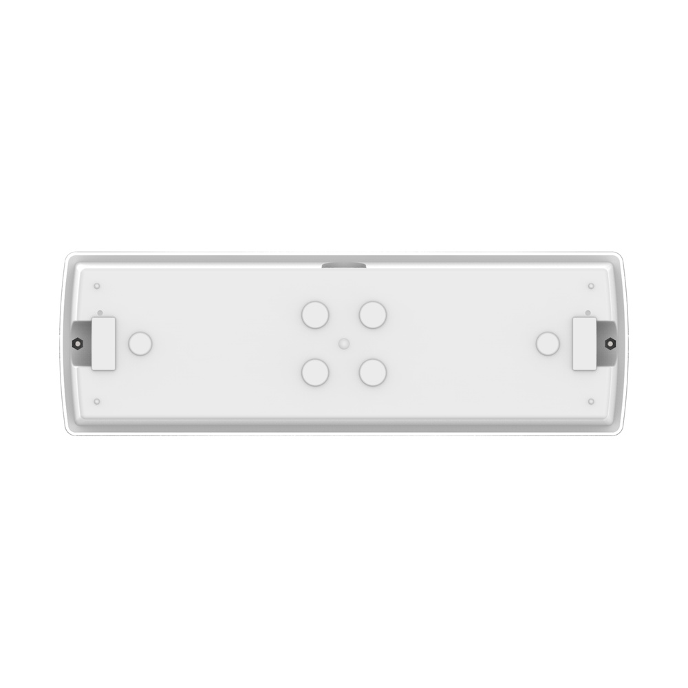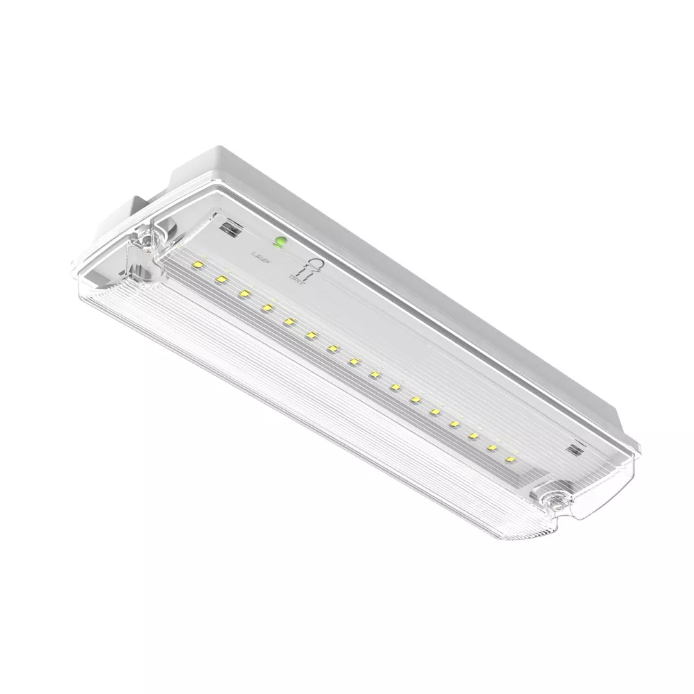 Rectangular EMERGENCY BULKHEAD with IP65 and 3 h standby time. Cechy produktu: Strumień świetlny: 200 lm. Stopień ochrony: IP65. Czas rozładowania baterii: 3 godziny. Technologia baterii: LiFePO4. Testowanie funkcji: ręcznie (MA) lub automatycznie (AT). Ze zintegrowanym przełącznikiem testowym do testowania ręcznego. Tryb pracy: obsługowy (M) lub bezobsługowy (NM). Zalety produktu: Działanie zintegrowanej funkcji automatycznego testowania dzięki baterii LiFePO4 o dużej trwałości i 3-godzinnym czasem rozładowania. Łatwa konserwacja dzięki funkcji automatycznego testu lub zintegrowanemu przełącznikowi testowemu. Piktogramy awaryjne dołączone do opakowań. Obszary zastosowań: Oświetlenie zapobiegające powstawaniu paniki. Przemysł. Korytarze, klatki schodowe i wejścia. Porady dotyczące bezpieczeństwa: Wszystkie podłączenia elektryczne muszą być wykonane przez osobę wykwalifikowaną.. Uwaga, ryzyko porażenia prądem..
