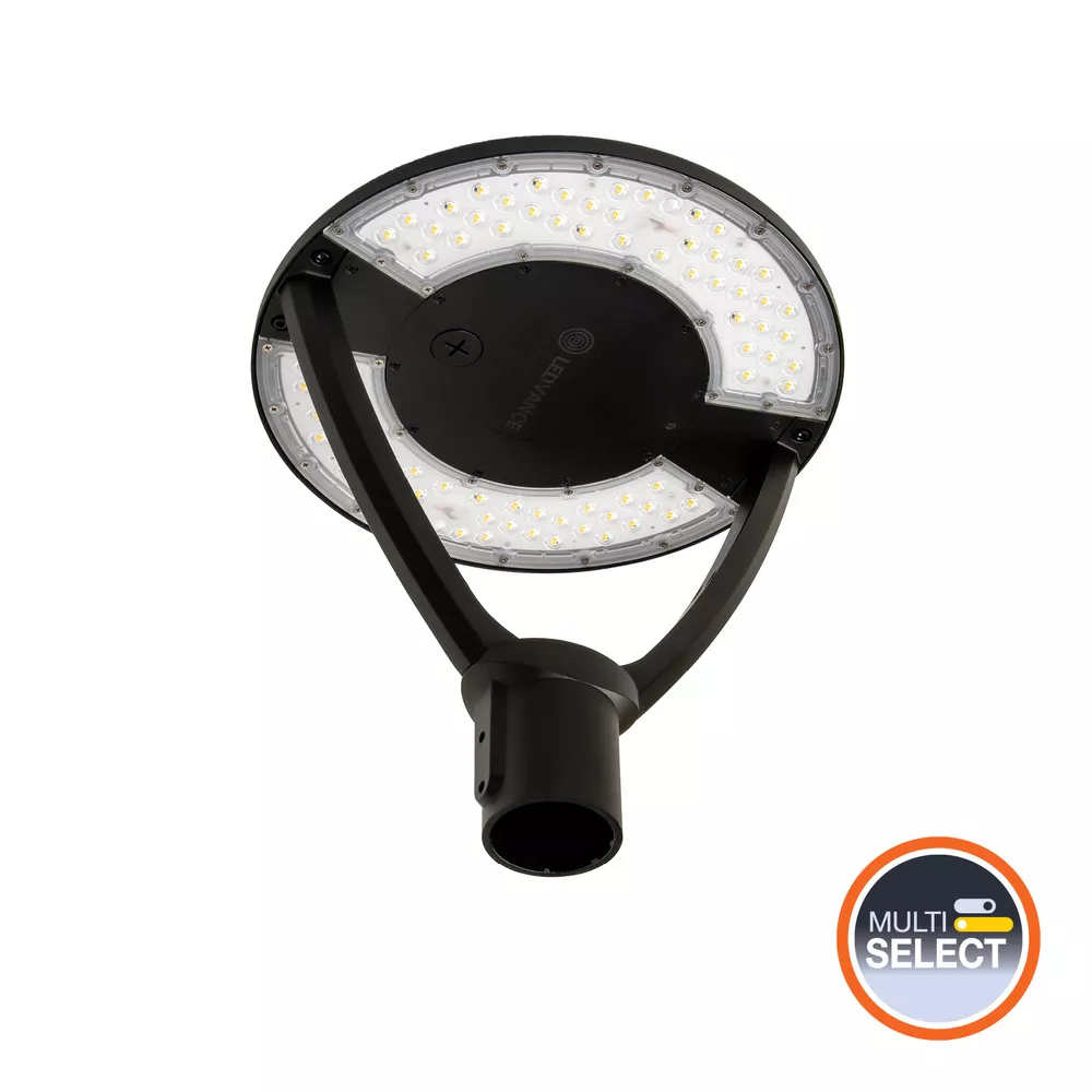 Oprawa do zastosowania w oświetleniu zewnętrznym. Cechy produktu: Klasa ochronności: II. Trwałość (L80-B10): do 100 000 h (przy 25°C). Stopień ochrony: IP66. Odporność na uderzenia: IK10. Symetryczny rozsył światła. Zalety produktu: Wysoka wszechstronność dzięki możliwości wyboru stopni CCT i mocy (Power Select – PS). Niewielkie tętnienie światła dzięki specjalnemu statecznikowi elektronicznemu. Oszczędność energii dzięki wysokiej skuteczności świetlnej systemu: do 139 lm/W. Jasna, odporna i trwała. Obszary zastosowań: Zamiennik do opraw z lampami rtęciowymi lub metalohalogenkowymi. Ulice. Instalacje mieszkaniowe. Strefy dla pieszych. Parki. Strefy publiczne.