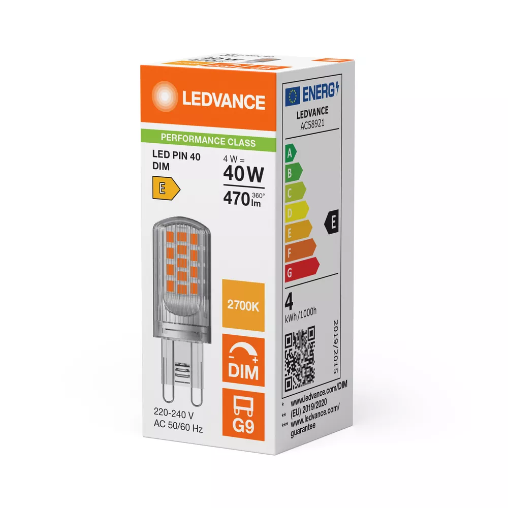 Lampy LED z możliwością ściemniania z trzonkiem G9. Cechy produktu: Ściemnialne (za pomocą licznych popularnych ściemniaczy, zobacz więcej www.ledvance.pl/dim). Zamiennik LED dla wysokonapięciowych żarówek halogenowych. Zalety produktu: Równomierny rozsył światła we wszystkich kierunkach. Długa trwałość do 25 000 godzin. Idealne do zastosowania dekoracyjnego oraz do eksploatacji bez oprawy. 5-letnia gwarancja. Niższe zużycie energii w porównaniu do lamp żarowych lub halogenowych. Obszary zastosowań: Nastrojowe oświetlenie akcentujące w całym domu. Sklepy, hotele i restauracje. Do użytku na zewnątrz tylko w odpowiednich oprawach zewnętrznych. Porady dotyczące bezpieczeństwa: Nie dotykaj lampy, jeśli jest stłuczona.. Nie wolno używać, jeśli zewnętrzne źródło światła jest uszkodzone.. Aby zapewnić pełną wydajność oświetlenia i trwałość produktu, zalecane jest demontaż szyby lub osłony oprawy oświetleniowej..