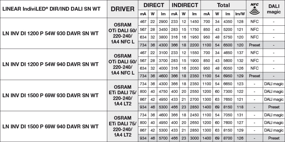Oprawa LINEAR INDIVILED DIRECT/INDIRECT 1200 DALI SENSOR 1200 P 54W 940 DAVR SN WT