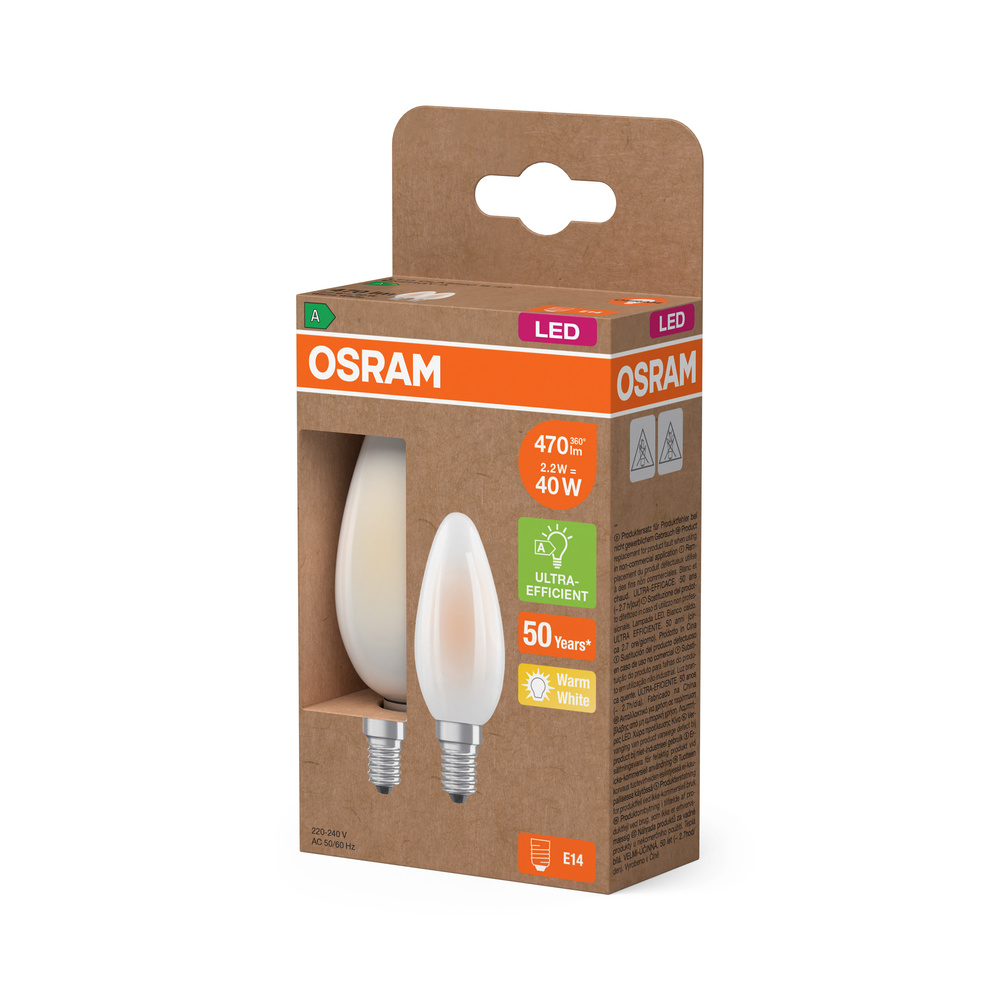 Lampy LED , klasyczny kształt świecy, KLASA O EFEKTYWNOŚCI ENERGETYCZNEJ A. Cechy produktu: Lampy LED dla napięcia sieciowego. Kąt wiązki światła: do 300°. Długa trwałość do 50 000 godzin. Bardzo duża liczba cykli przełączania 500 000. Skuteczność świetlna do 210 lm/W. Zalety produktu: Lampy wyposażone w innowacyjną technologię „włókien” LED. Wygląd, wymiary i strumień świetlny porównywalne z żarówkami halogenowymi. Niskie zużycie energii. Natychmiast 100 % światła, bez czasu nagrzewania. Niskie tętnienie światła. Obszary zastosowań: Doskonałe rozwiązanie do instalacji dekoracyjnych. Zastosowania domowe. Oświetlenie ogólne. Do użytku na zewnątrz tylko w odpowiednich oprawach zewnętrznych. Porady dotyczące bezpieczeństwa: Nie dotykaj lampy, jeśli jest stłuczona.. Nie wolno używać, jeśli zewnętrzne źródło światła jest uszkodzone..