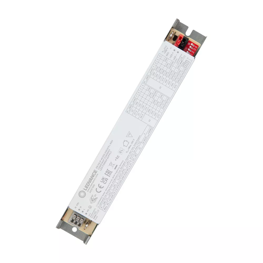Zasilacz LED prądu stałego z możliwością ustawienia prądu za pomocą przełącznika DIP. Cechy produktu: Dostępne w wersjach 40 W, 60 W, 90 W i 150 W. Bardzo długa żywotność: do 100 000 godzin. Stopień ochrony: IP20. Niskie tętnienie prądu < 5%. Napięcie zasilania: 220…240 V. Częstotliwość robocza: 0/50/60 Hz. Bezpieczeństwo potwierdzone certyfikatem ENEC. Bezpieczeństwo zgodnie z normami PN-EN 61347-1, 61347-2-13, 62384. Odporność zgodna z normą EN 61547. Zalety produktu: Wysoka elastyczność dzięki regulowanym prądom wyjściowym za pomocą przełącznika DIP (16 prądów). Niewielkie tętnienie światła zapewnia wysoką jakość światła oraz dobry komfort wizualny. Elastyczne ustawienia prądu przełącznika DIP na urządzeniu w krokach co 25 mA. Geometria zgodna ze specyfikacją Zhaga. Wysoka skuteczność świetlna. Instalacja w systemach oświetlenia awaryjnego zgodnie z IEC 61347-2-13, załącznik J. 5-letnia gwarancja. Obszary zastosowań: Odpowiednie do opraw oświetleniowych i modułów LED. Dotyczy opraw o I klasie ochronności. Nadaje się do instalacji wewnętrznych bez SELV. Przeznaczone dla instalacji awaryjnych. Oświetlenie liniowe do biur, edukacji, przemysłu, magazynów i handlu detalicznego.