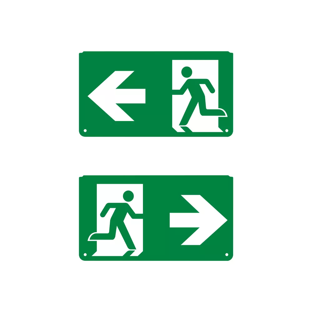 Pictograms to use with EMERGENCY EXIT SIGN. Zalety produktu: Łatwa instalacja. Obszary zastosowań: Oświetlenie awaryjne dróg ewakuacyjnych. Biura, edukacja, budynki użyteczności publicznej. Przemysł.