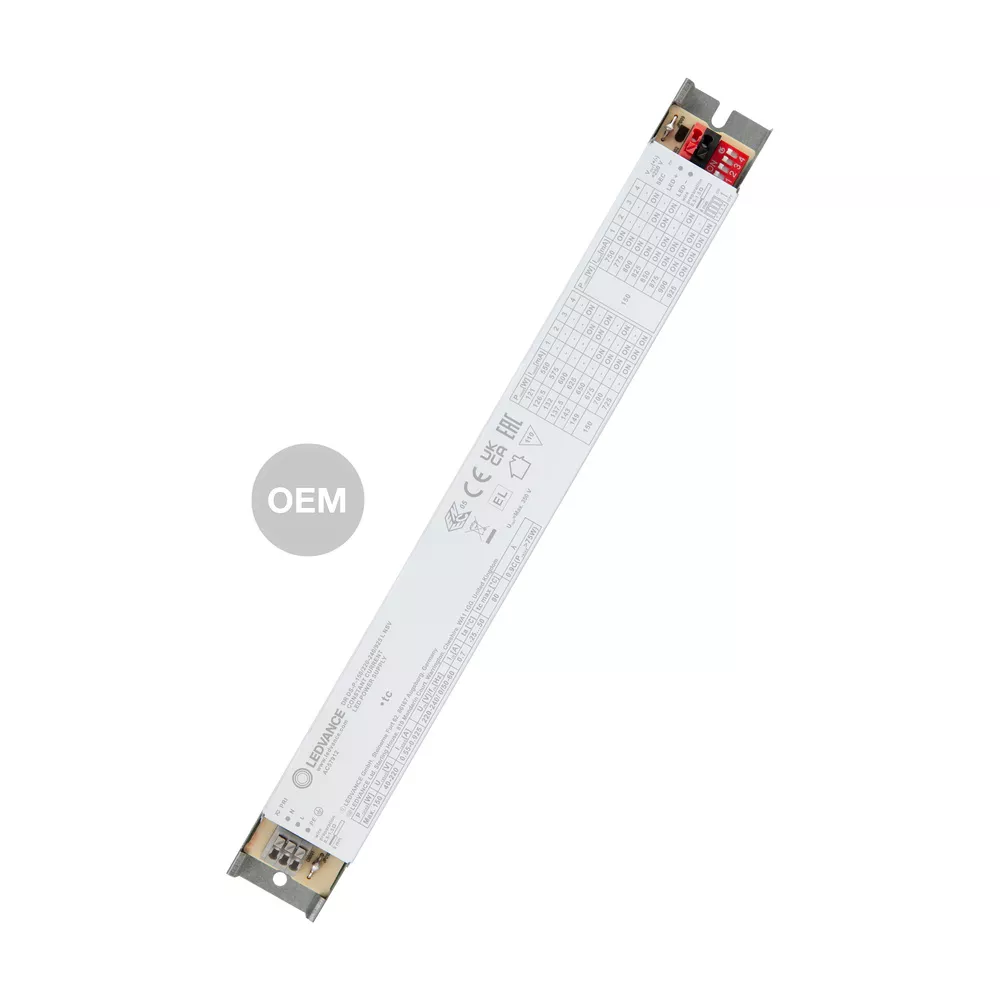 Zasilacz LED prądu stałego z możliwością ustawienia prądu za pomocą przełącznika DIP. Cechy produktu: Dostępne w wersjach 40 W, 60 W, 90 W i 150 W. Bardzo długa żywotność: do 100 000 godzin. Stopień ochrony: IP20. Niskie tętnienie prądu < 5%. Napięcie zasilania: 220…240 V. Częstotliwość robocza: 0/50/60 Hz. Bezpieczeństwo potwierdzone certyfikatem ENEC. Bezpieczeństwo zgodnie z normami PN-EN 61347-1, 61347-2-13, 62384. Odporność zgodna z normą EN 61547. Zalety produktu: Wysoka elastyczność dzięki regulowanym prądom wyjściowym za pomocą przełącznika DIP (16 prądów). Niewielkie tętnienie światła zapewnia wysoką jakość światła oraz dobry komfort wizualny. Elastyczne ustawienia prądu przełącznika DIP na urządzeniu w krokach co 25 mA. Geometria zgodna ze specyfikacją Zhaga. Wysoka skuteczność świetlna. Instalacja w systemach oświetlenia awaryjnego zgodnie z IEC 61347-2-13, załącznik J. 5-letnia gwarancja. Obszary zastosowań: Odpowiednie do opraw oświetleniowych i modułów LED. Dotyczy opraw o I klasie ochronności. Nadaje się do instalacji wewnętrznych bez SELV. Przeznaczone dla instalacji awaryjnych. Oświetlenie liniowe do biur, edukacji, przemysłu, magazynów i handlu detalicznego.