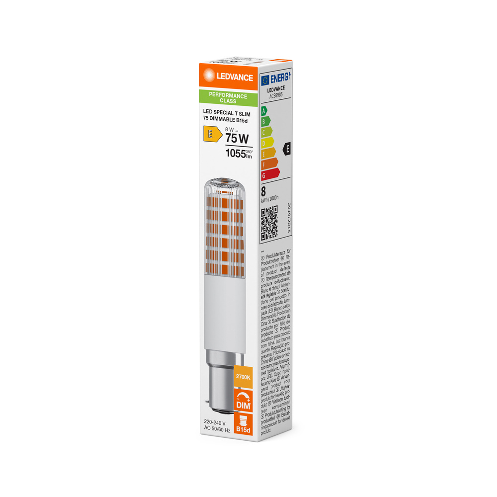 Ściemnialne, wąskie lampy LED. Cechy produktu: Ściemnialne (za pomocą licznych popularnych ściemniaczy, zobacz więcej <a href="http://www.ledvance.pl/dim">www.ledvance.pl/dim</a>). Zamienniki LED dla konwencjonalnych żarówek wysokonapięciowych. Dobra jakość światła, wskaźnik oddawania barw R<sub>a</sub>: ≥ 80; stała chromatyczność. Zalety produktu: Prosty w użyciu zamiennik żarówek halogenowych dzięki kompaktowej konstrukcji. Idealne zwłaszcza do małych opraw designerskich. Niskie obciążenie cieplne (w porównaniu ze standardowym produktem referencyjnym). 3-letnia gwarancja. Niższe zużycie energii w porównaniu do lamp żarowych lub halogenowych. Obszary zastosowań: Małe oprawy designerskie. Tam, gdzie potrzebne są wydajne lampy kompaktowe. Do użytku na zewnątrz tylko w odpowiednich oprawach zewnętrznych. Porady dotyczące bezpieczeństwa: Nie dotykaj lampy, jeśli jest stłuczona.. Nie wolno używać, jeśli zewnętrzne źródło światła jest uszkodzone.. Aby zapewnić pełną wydajność oświetlenia i trwałość produktu, zalecane jest demontaż szyby lub osłony oprawy oświetleniowej..