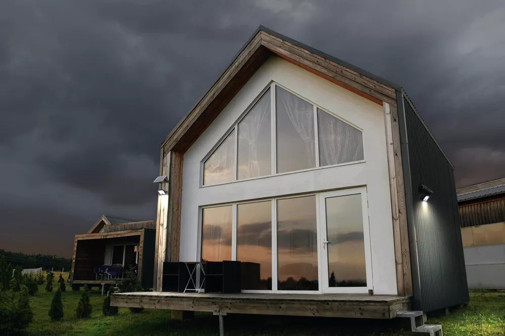 Oprawa zasilana energią słoneczną, podzielona na reflektor i zewnętrzny panel słoneczny połączony przewodem. Cechy produktu: Oprawy oświetleniowe LED do użytku zewnętrznego zasilane energią słoneczną. Czujnik ruchu PIR i czujnik światła. Ładowanie akumulatora poprzez zewnętrzny panel słoneczny. Pilot do zaawansowanych ustawień czujnika. Naświetlacz i panel słoneczny są połączone za pomocą przewodu o długości 5 m. Zalety produktu: Ekologiczna oprawa zasilana energią słoneczną;. Wydajne energetycznie dzięki technologii LED. Naświetlacz można zamontować niezależnie od panelu słonecznego. Obszary zastosowań: Na zewnątrz. Garaże. Elewacje budynków. Domki ogrodowe. Wyposażenie / Akcesoria: Kompletne akcesoria do montażu i podłączenia w zestawie. Przewód połączeniowy o długości 5 m. Pilot w zestawie. Porady dotyczące bezpieczeństwa: Ostrzeżenie dotyczące baterii: Przechowywać poza zasięgiem dzieci. Połknięcie może prowadzić do oparzeń chemicznych, perforacji tkanek miękkich i śmierci. Ciężkie oparzenia mogą wystąpić w ciągu 2 godzin od połknięcia. Natychmiast zasięgnij porady lekarza. . Jeśli komora baterii (jeśli dotyczy) nie zamyka się bezpiecznie, zaprzestań używania produktu i trzymaj go z dala od dzieci. Jeśli podejrzewasz, że baterie mogły zostać połknięte lub umieszczone w jakiejkolwiek części ciała, natychmiast zwróć się o pomoc lekarską.. Prosimy unikać: Maksymalna temperatura otoczenia: +35 °C. Wymiana baterii na nieprawidłowy typ, który może obejść zabezpieczenie (na przykład w przypadku niektórych typów baterii litowych). Wysokość podczas pracy: 2000 m. Utylizacja baterii w ogniu lub gorącym piekarniku, lub mechaniczne zgniatanie lub cięcie baterii, co może spowodować wybuch..