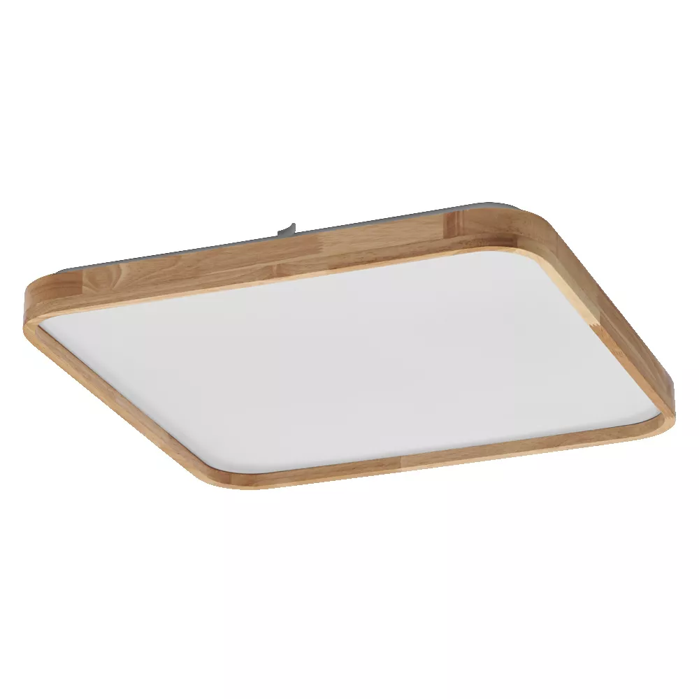 luminaire sufitowa LED z drewnianym pierścieniem. Cechy produktu: Stopień ochrony: IP20. Trwałość: do 30 000 h. Wersja z możliwością ściemniania: ściemnianie trzypoziomowe przełączane poprzez wielokrotne przełączanie. Temperatura barwowa: 3000 K (Warm White - ciepłobiała). Materiał obudowy: tworzywo sztuczne i drewno. Zalety produktu: Stylowy i nowoczesny wygląd. Łatwy montaż i użycie. Dłuższa trwałość dzięki technologii LED. Obszary zastosowań: Oprawy do użytku wewnętrznego. Pomieszczenia prywatne (pokoje dzienne, jadalnie, sypialnie itp.). Wyposażenie / Akcesoria: Śruby i kołki montażowe dostarczone w zestawie. Porady dotyczące bezpieczeństwa: Podczas przeprowadzania instalacji i czynności serwisowych oraz zdejmowania klosza oprawę oświetleniową należy odłączyć od zasilania. Sprawdź przydatność ściany i sufitu. Jeśli nie jesteś pewien, zasięgnij profesjonalnej porady.. Produkt w klasie ochrony I. Wszystkie przewodzące prąd, metalowe części obudowy, które mogą absorbować napięcie podczas pracy lub podczas konserwacji w przypadku awarii, muszą być stale PODŁĄCZONE do przewodu uziemiającego.. Wszystkie podłączenia elektryczne muszą być wykonane przez osobę wykwalifikowaną.. Uwaga, ryzyko porażenia prądem..