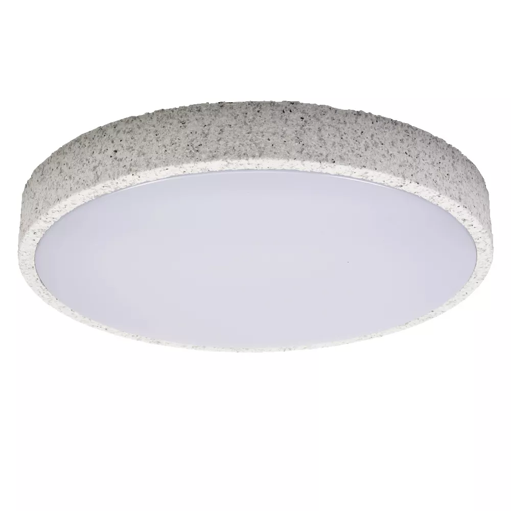 luminaire sufitowa LED z metalową ramą z piaskowanego kamienia. Cechy produktu: Stopień ochrony: IP20. Trwałość: do 30 000 h. Wersja z możliwością ściemniania: ściemnianie trzypoziomowe przełączane poprzez wielokrotne przełączanie. Temperatura barwowa: 3000 K (Warm White - ciepłobiała). Obudowa z metalu, klosz z PMMA. Zalety produktu: Stylowy i nowoczesny wygląd. Łatwy montaż i użycie. Dłuższa trwałość dzięki technologii LED. Obszary zastosowań: Oprawy do użytku wewnętrznego. Pomieszczenia prywatne (pokoje dzienne, jadalnie, sypialnie itp.). Wyposażenie / Akcesoria: Śruby i kołki montażowe dostarczone w zestawie. Porady dotyczące bezpieczeństwa: Podczas przeprowadzania instalacji i czynności serwisowych oraz zdejmowania klosza oprawę oświetleniową należy odłączyć od zasilania. Sprawdź przydatność ściany i sufitu. Jeśli nie jesteś pewien, zasięgnij profesjonalnej porady.. Produkt w klasie ochrony I. Wszystkie przewodzące prąd, metalowe części obudowy, które mogą absorbować napięcie podczas pracy lub podczas konserwacji w przypadku awarii, muszą być stale PODŁĄCZONE do przewodu uziemiającego.. Wszystkie podłączenia elektryczne muszą być wykonane przez osobę wykwalifikowaną.. Uwaga, ryzyko porażenia prądem..