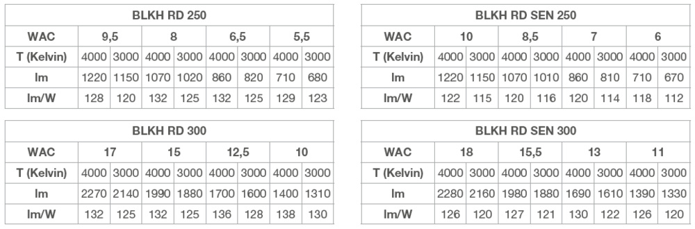 | Znamionowy strumień świetlny zgodnie z normą IEC 62722-2-1: | 710 - 1 220 lm |