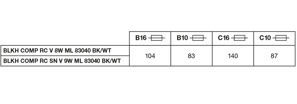 | Maks. liczba opraw na wyłącznik nadprądowy B16: | 104 |