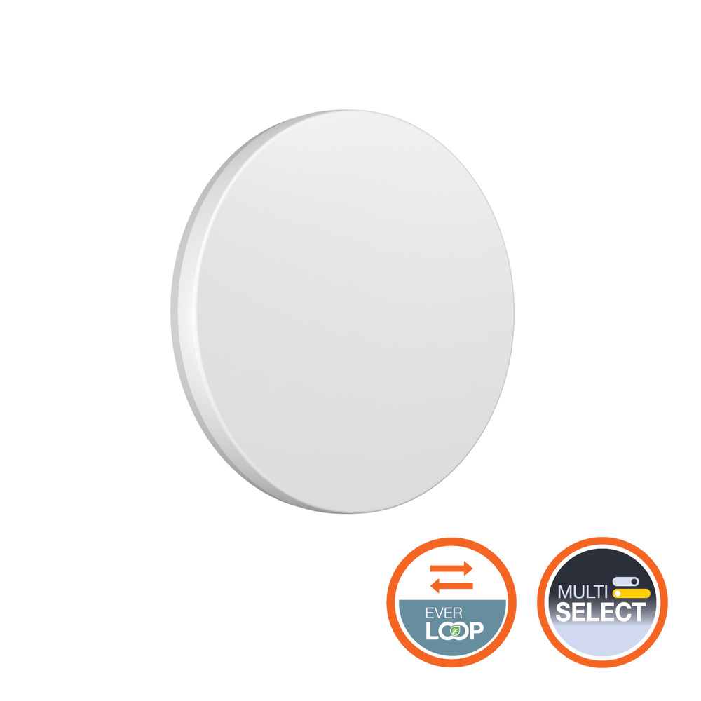 Uniwersalna, okrągła oprawa ścienna i luminaire. Cechy produktu: Rodzaj ochrony: IP54 (ściana i sufit). Odporność na uderzenia: IK08. Żywotność (L80/B10): 100 000 h (przy 25°C), (L90/B10): 50 000 h (przy 25°C). Obudowa z poliwęglanu (PC), dyfuzor z PC. Temperatura otoczenia podczas pracy: -20…+45 °C. Próba rozżarzonym drutem zgodna z normą IEC 60695-2-12: 850 °C. 5-biegunowa listwa zaciskowa, przekrój przewodu do 5 x 2,5 mm². Możliwość wykorzystania wewnętrznego okablowania. Tylko do użytku wewnętrznego nie nadaje się do zastosowania na zewnątrz. Wersja czujnika z czujnikiem wysokiej częstotliwości, funkcją korytarzową i grupującą. Zalety produktu: Łatwa rozbudowa źródła światła, sterownika i czujnika (konstrukcja EVERLOOP). Wysoka wszechstronność dzięki możliwości wyboru stopni CCT i mocy (Multi Color / Multi Lumen) w sterowniku. Oprawa wewnętrzna o wysokiej skuteczności świetlnej do 140 lm/W. Wysoka jednorodność barw dzięki SDCM 3. Instalacja elektryczna bez użycia narzędzi za pomocą wtyków. Bardzo jednorodne światło z lekkim efektem podświetlenia. W przypadku wersji DALI możliwe są opcje rozszerzone, takie jak monitorowanie zużycia energii i zdalna konserwacja. 5-letnia gwarancja. Obszary zastosowań: Bezpośredni zamiennik opraw nastropowych ze zintegrowanymi świetlówkami CFLni. Korytarze. Schody. Łazienki. Hole. Wyposażenie / Akcesoria: Oprawa EVERLOOP: dostępne aktualizacje i zamienniki. Ozdobna srebrna ramka dostępna osobno.