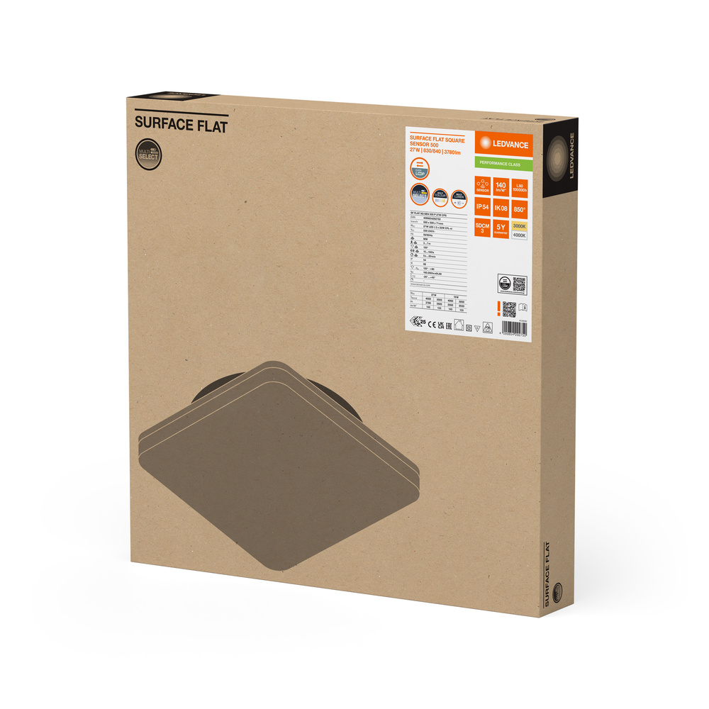 Oprawa SURFACE FLAT SQUARE SENSOR 500 P 27W CPS