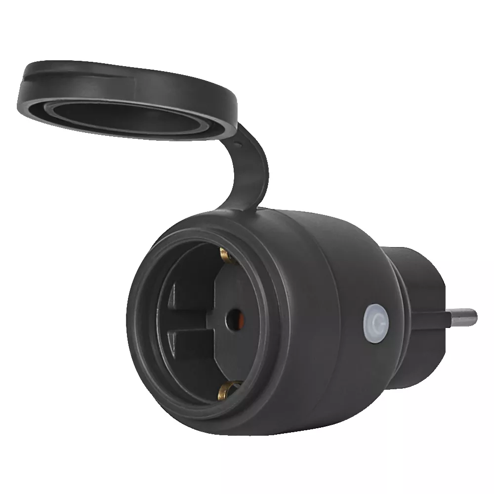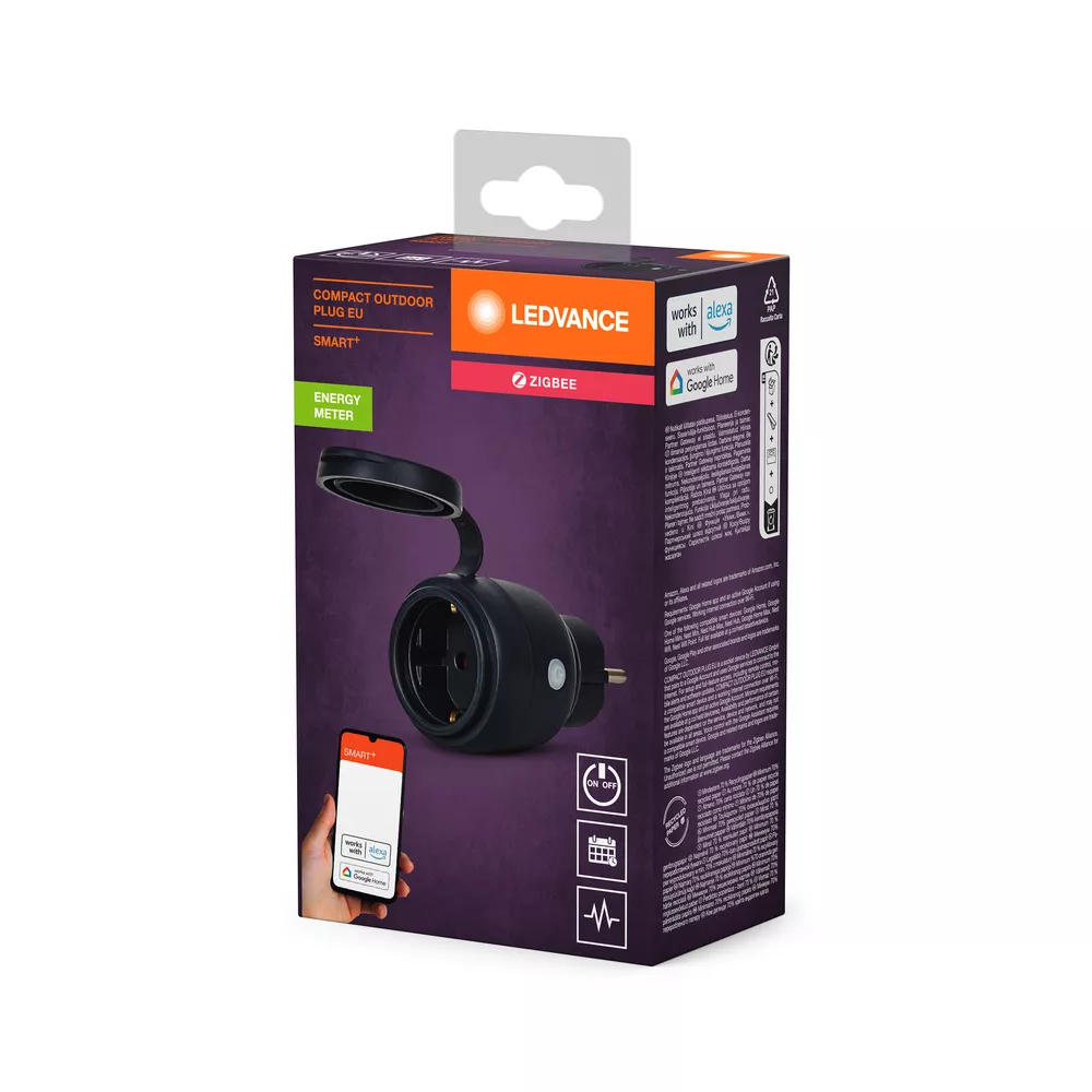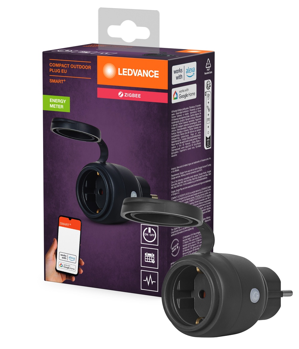 Kompaktowa wtyczka zewnętrzna z inteligentnym gniazdem i licznikiem energii do sterowania urządzeniami nieinteligentnymi z technologią ZigBee. Cechy produktu: Sterowanie przez kompatybilny system inteligentnego domu (bramka i aplikacja) lub przycisk włączania/wyłączania na urządzeniu. Dostępne sterowanie za pomocą sterowania głosowego: Google Home lub Amazon Alexa, w zależności od używanego systemu inteligentnego domu. Stopień ochrony: IP44. Licznik energii. Projektowanie. Protokół sieciowy: ZigBee 3.0. Do wykorzystania pełni możliwości potrzebne jest połączenie do kompatybilnego systemu sterowania inteligentnym domem (aplikacja i bramka). Wysoka moc przełączania: do 3680 W / 16 A. Zalety produktu: Integruje konwencjonalne urządzenia elektryczne z kompatybilnymi systemami sterowania domem inteligentnym. Umożliwia przełączanie konwencjonalnych źródeł światła i innych urządzeń elektrycznych. Nadaje się do użytku na zewnątrz, stopień ochrony IP44 przed rozpryskami wody. Proste podłączenie urządzeń elektrycznych poprzez standardowe gniazdko. Monitoruje zużycie energii podłączonych urządzeń lub śledzi wytwarzanie energii przez małe systemy fotowoltaiczne. Obszary zastosowań: Miejsca, w których nieinteligentne urządzenia wymagają zintegrowania z kompatybilnymi systemami sterowania domem inteligentnym. Ogrody, balkony oraz inne miejsca na zewnątrz budynków. Do pomiaru wytwarzania energii przez małe systemy słoneczne. Porady dotyczące bezpieczeństwa: Odłącz urządzenia wytwarzające ciepło od sieci po użyciu, aby uniknąć ich przypadkowego włączenia.. Nie używaj wtyczki SMART+ razem ze sprzętem medycznym.. Produkt w klasie ochrony I. Wszystkie przewodzące prąd, metalowe części obudowy, które mogą absorbować napięcie podczas pracy lub podczas konserwacji w przypadku awarii, muszą być stale PODŁĄCZONE do przewodu uziemiającego.. Podłączenia do automatycznego zabezpieczenia (maks. 16 A)..