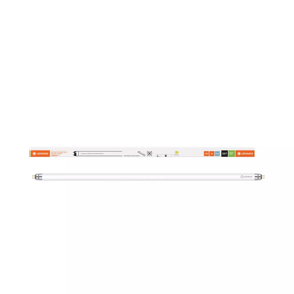 LED TUBE T5 EXTERNAL do LED DRIVER EXTERNAL. Cechy produktu: Przeznaczony do zasilania tylko z LED DRIVER LED TUBE EXTERNAL DALI. Tuba LED wykonana ze szkła z zabezpieczeniem przed odpryskami. Jakość ściemniania 1…100 %. Wysoka odporność na liczbę włączań. Nadaje się do temperatur otoczenia od -20…+50°C. Zalety produktu: Prosta aktualizacja do ściemnialnego systemu LED. Ochrona przed odpryskami dzięki specjalnej powłoce PET. Lampa nie ugina się dzięki rurce wykonanej ze szkła. 5-letnia gwarancja. Obszary zastosowań: Oświetlenie przemysłowe (np. zakładów przemysłowych, centr zaopatrzenia, magazynów). Oświetlenie liniowe do pomieszczeń biurowych, edukacyjnych, magazynowych i handlowych. Sklepy, supermarkety. Porady dotyczące bezpieczeństwa: Możliwa praca w zastosowaniach zewnętrznych w odpowiednich oprawach odpornych na wilgoć zgodnie z kartą katalogową i instrukcją instalacji.. Zakres temperatur pracy tub LED jest ograniczony. W przypadku wątpliwości, należy zmierzyć temperaturę w punkcie Tc oznaczonym na lampie w celu weryfikacji.. LED TUBE T5 EXTERNAL HO80 nie współpracuje ze sterownikiem 2-kanałowym.. Wszystkie podłączenia elektryczne muszą być wykonane przez osobę wykwalifikowaną.. Przed instalacją należy odłączyć zasilanie..