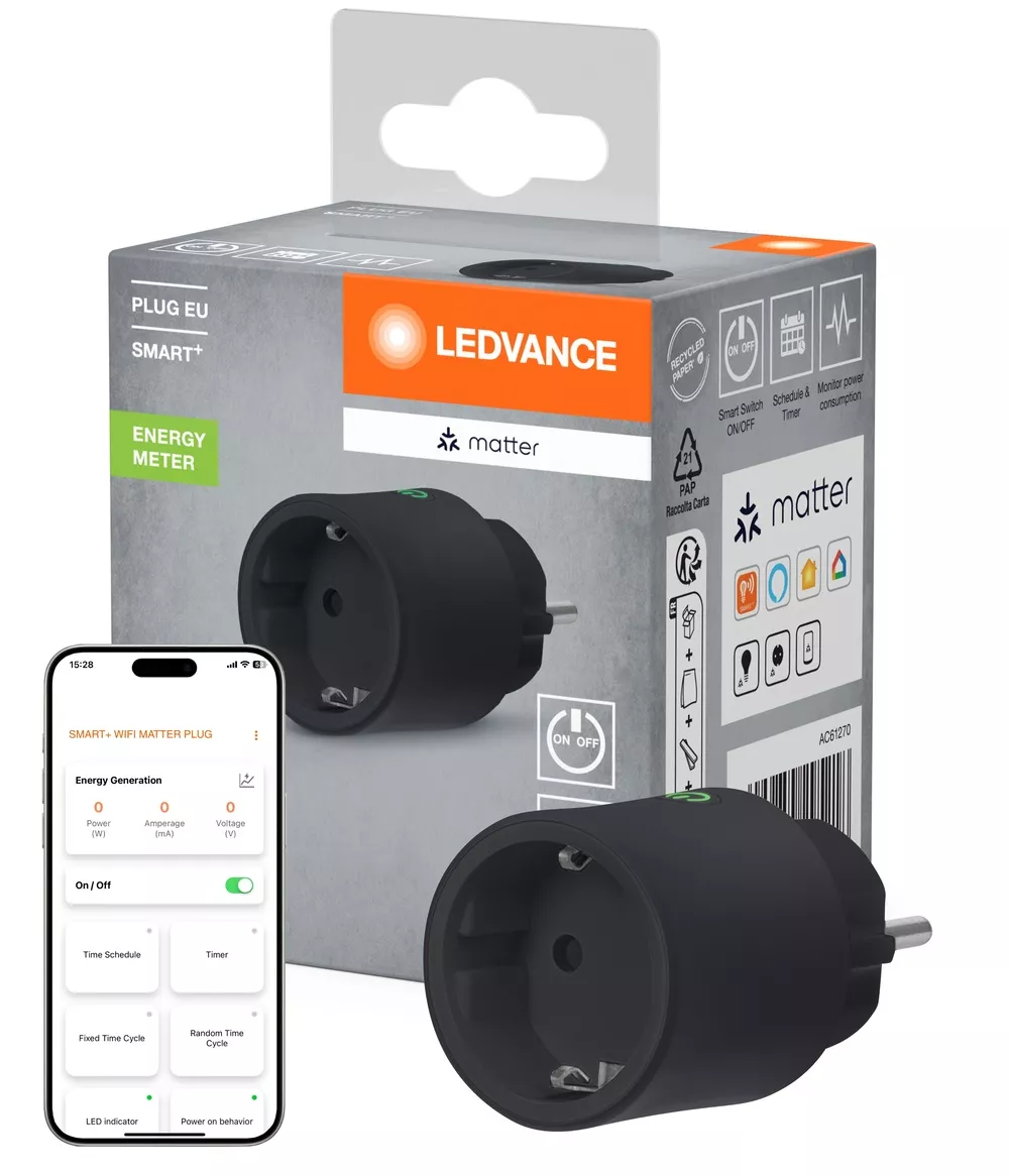 Wtyczka z inteligentnym gniazdem do sterowania urządzeniami innymi niż inteligentne z technologią Matter over WiFi. Cechy produktu: Wysoka moc obciążenia: do 2300 W / 10 A. Licznik energii. Projektowanie. Protokół sieciowy: Materia przez WiFi (2,4 GHz). Kompatybilny z Amazon Alexa, Google Home, Apple Home, Samsung SmartThings i innymi platformami kompatybilnymi z Matter. Możliwość sterowania za pomocą aplikacji SMART+ (z systemem Android w wersji 8.0 lub iOS w wersji 14.0). Zalety produktu: Sterowanie bezprzewodowe za pomocą aplikacji lub sterowania głosowego. Bezproblemowa integracja z systemami kompatybilnymi z Matter. Uproszczony proces konfiguracji dzięki standardowym, przyjaznym dla użytkownika etapom instalacji. Zwiększone bezpieczeństwo poprzez wdrożenie silnych protokołów szyfrowania i uwierzytelniania. Niewielka konstrukcja, kompatybilna ze wszystkimi typami gniazd i nie kolidująca z sąsiednimi gniazdami. Integruje konwencjonalne urządzenia elektryczne z kompatybilnymi systemami sterowania domem inteligentnym. Umożliwia przełączanie konwencjonalnych źródeł światła i innych urządzeń elektrycznych. Monitoruje zużycie energii podłączonych urządzeń. Obszary zastosowań: Miejsca, w których nieinteligentne urządzenia wymagają zintegrowania z kompatybilnymi systemami sterowania domem inteligentnym. Gdy użytkownicy chcą mieszać i dopasowywać produkty inteligentnego domu różnych producentów. Porady dotyczące bezpieczeństwa: Odłącz urządzenia wytwarzające ciepło od sieci po użyciu, aby uniknąć ich przypadkowego włączenia.. Nie używaj wtyczki SMART+ razem ze sprzętem medycznym.. Podłączenia do wyłącznika automatycznego (dla maks.10 A). Produkt w klasie ochrony I. Wszystkie przewodzące prąd, metalowe części obudowy, które mogą absorbować napięcie podczas pracy lub podczas konserwacji w przypadku awarii, muszą być stale PODŁĄCZONE do przewodu uziemiającego..